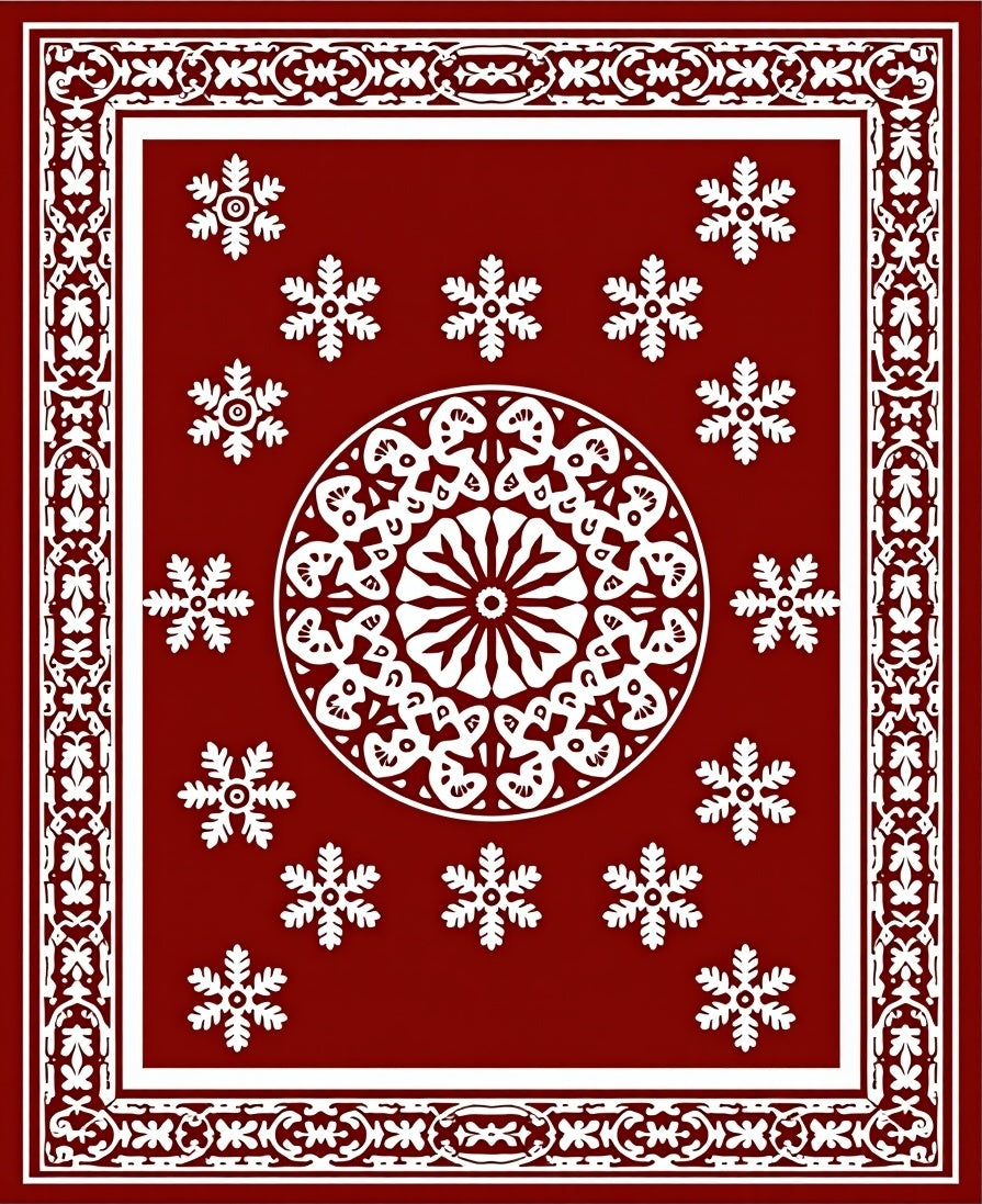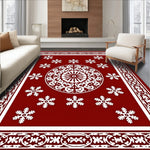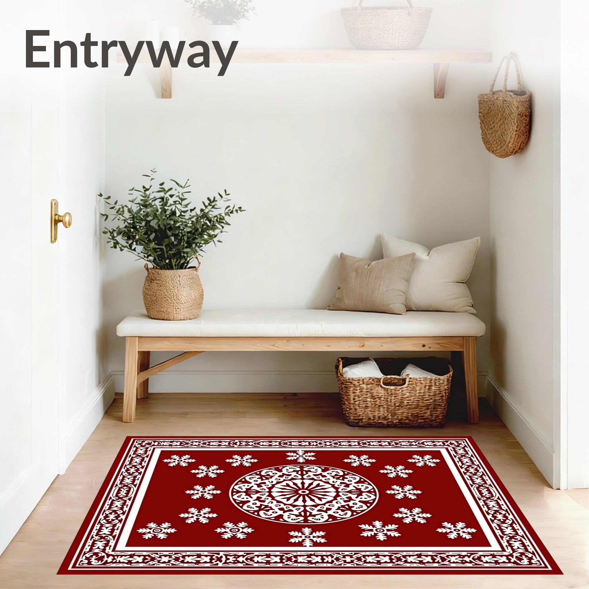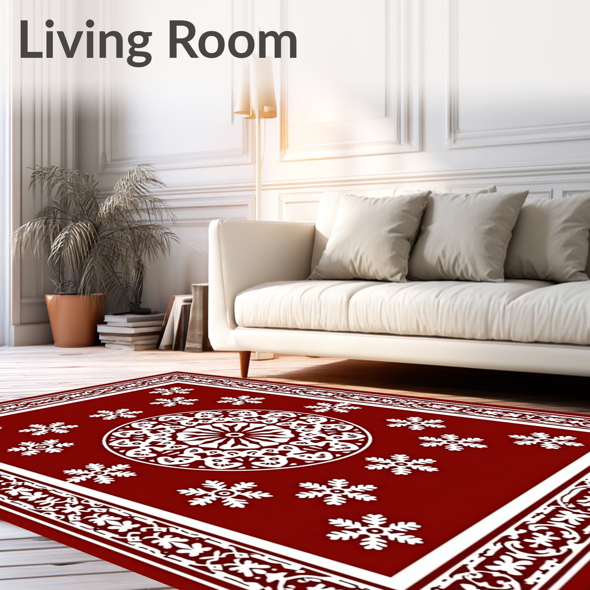 Ultra Soft Area Rug, Non Slip, Stain Resistant, Washable Area Rugs for Living Room, Bedroom, Festive Snowflake Medallion Accent With Elegant Interlocking Motifs(Red) Overview: