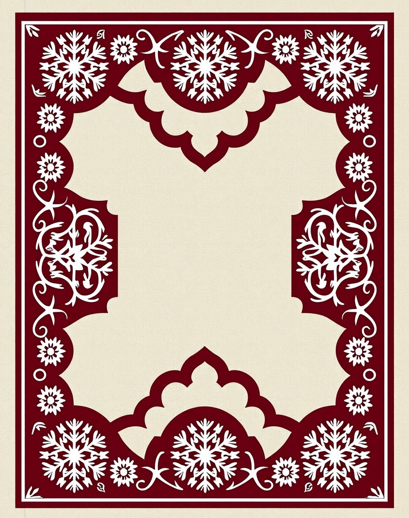 Festive Snowflake Medallion Accent With Interlocking Chevron Borders(Red)
