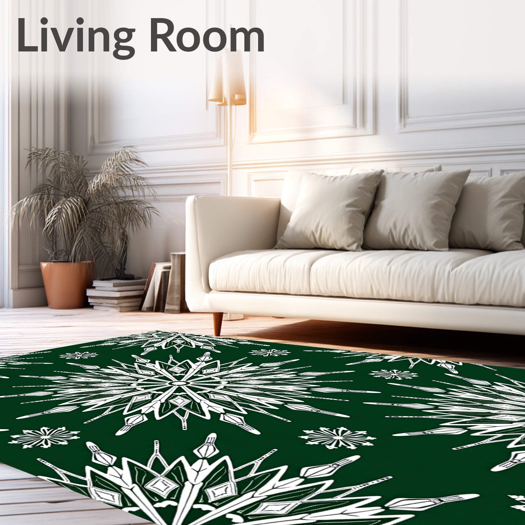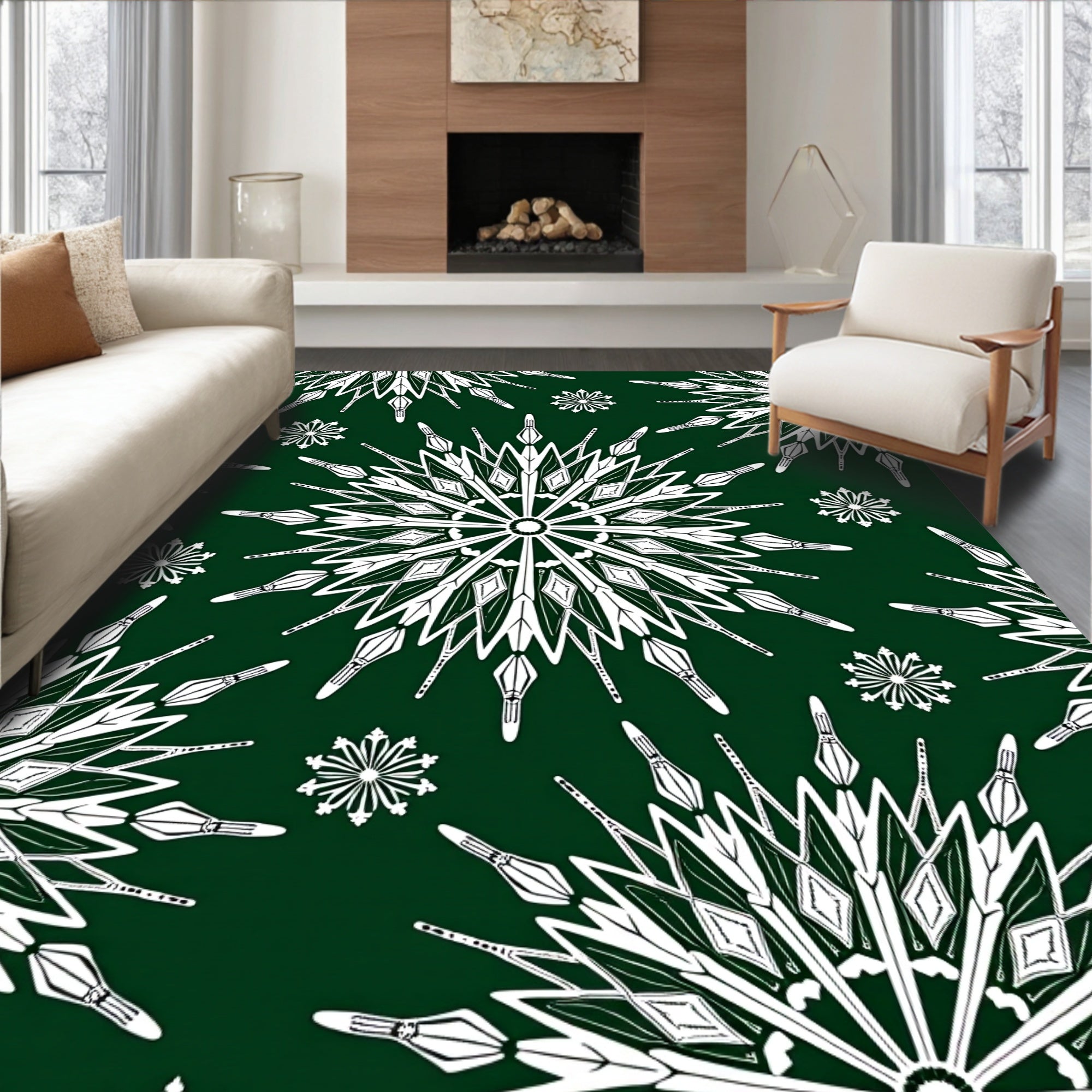 Ultra Soft Area Rug, Non Slip, Stain Resistant, Washable Area Rugs for Living Room, Bedroom, Festive Snowflake Medallion Holiday Decorative Floor Covering(Green) Overview: