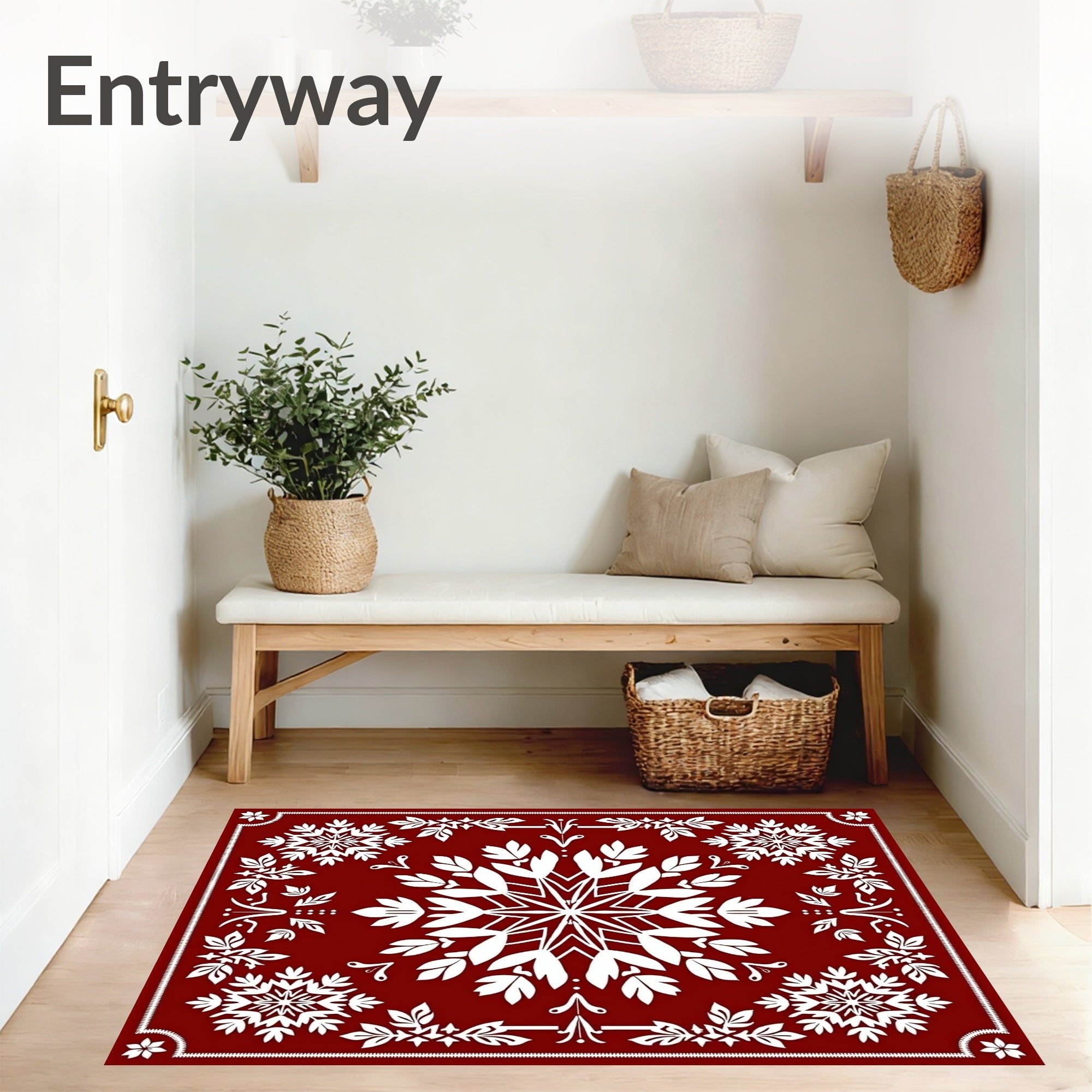 Festive Snowflake Medallion Winter Holiday Accent Doorway(Red)