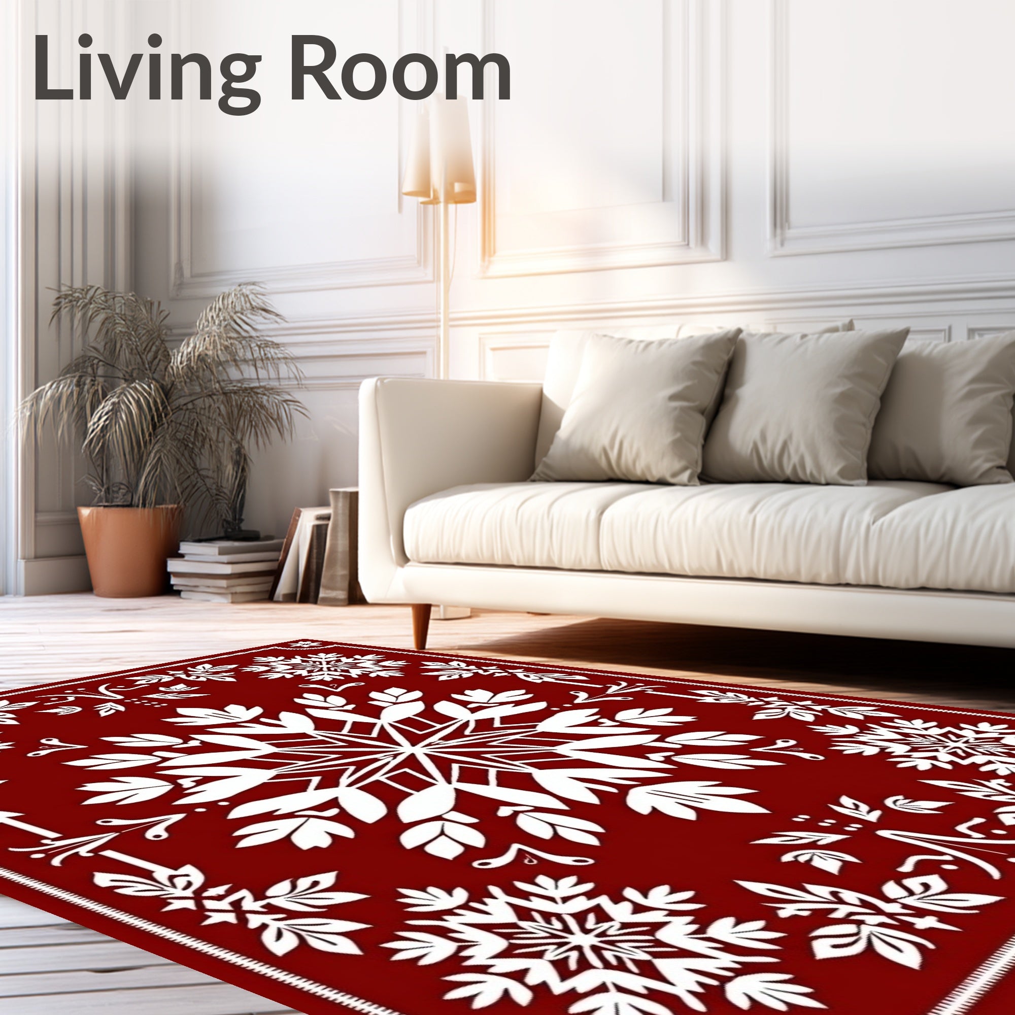 Ultra Soft Area Rug, Non Slip, Stain Resistant, Washable Area Rugs for Living Room, Bedroom, Festive Snowflake Medallion Winter Holiday Accent Doorway(Red) Overview: