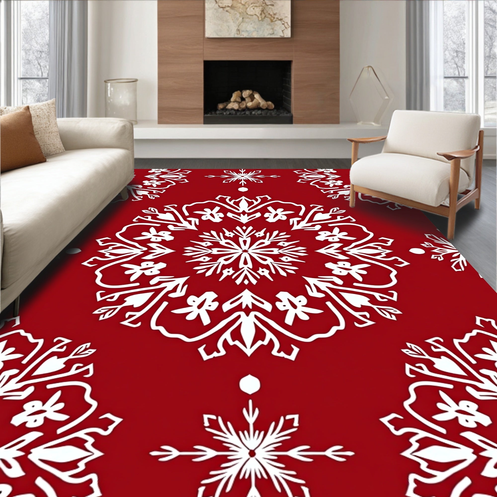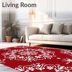 Ultra Soft Area Rug, Non Slip, Stain Resistant, Washable Area Rugs for Living Room, Bedroom, Festive Snowflake Medallion Winter Holiday Accent Throw(Red) Overview: