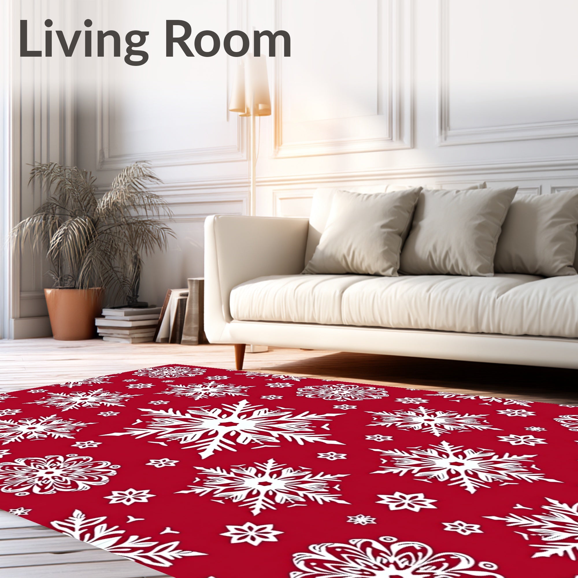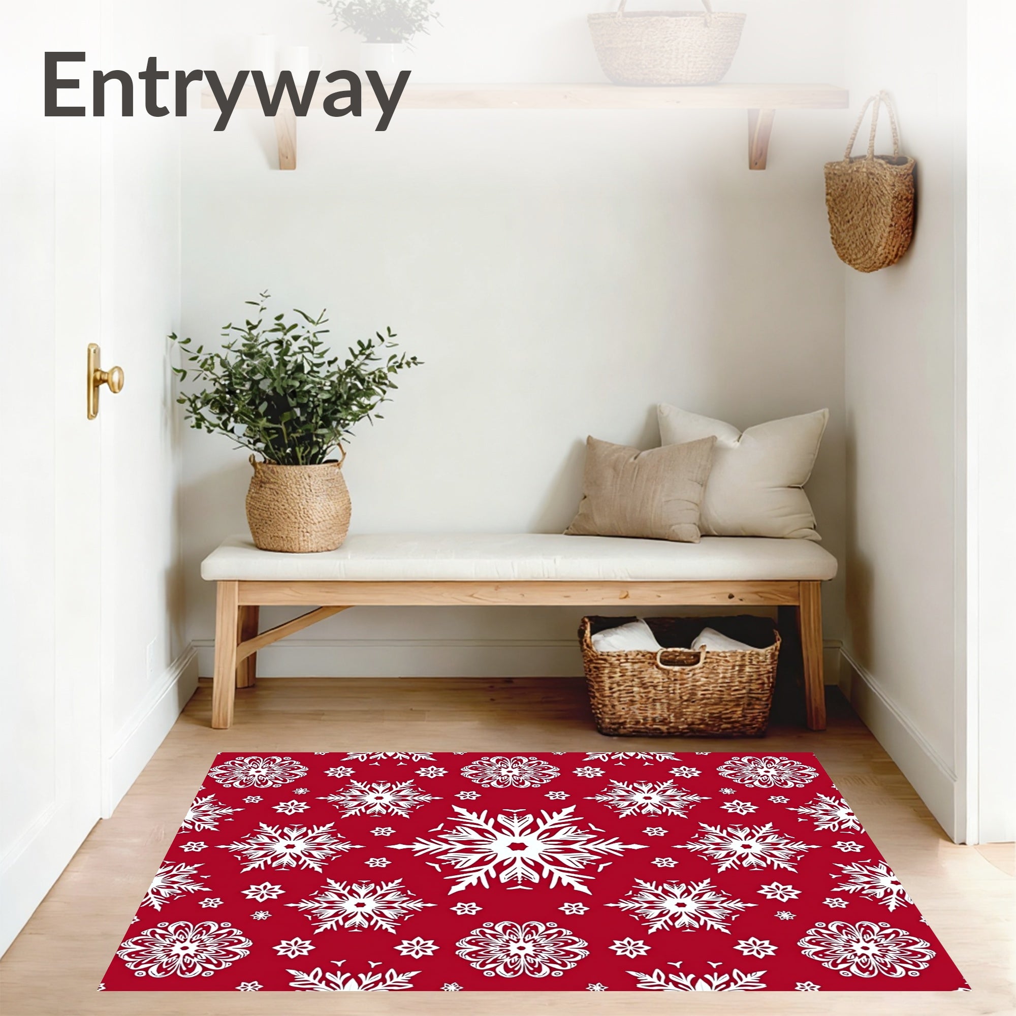 Ultra Soft Area Rug, Non Slip, Stain Resistant, Washable Area Rugs for Living Room, Bedroom, Festive Snowflake Medallion Winter Holiday Decorative Floor Covering(Red) Overview: