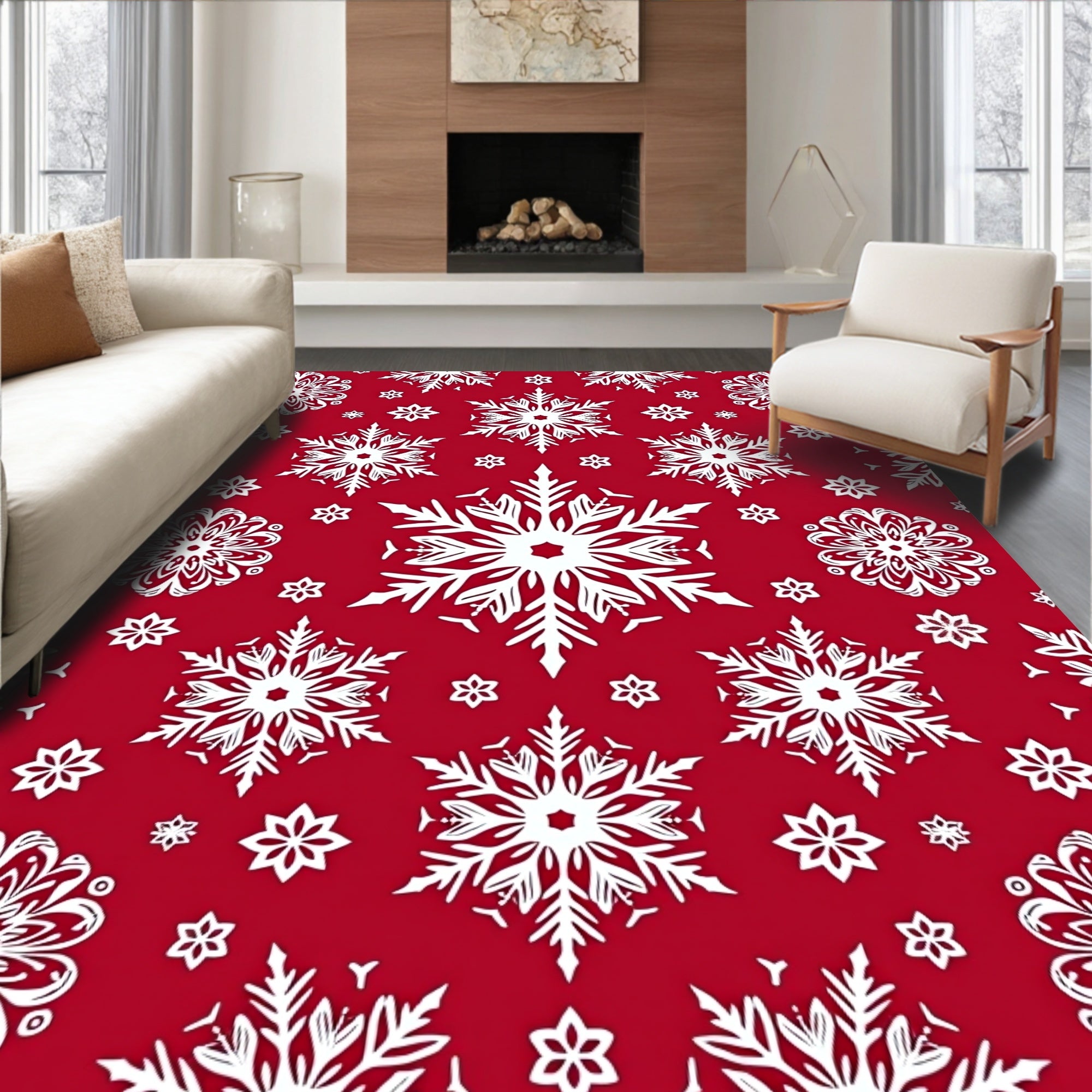 Festive Snowflake Medallion Winter Holiday Decorative Floor Covering(Red)