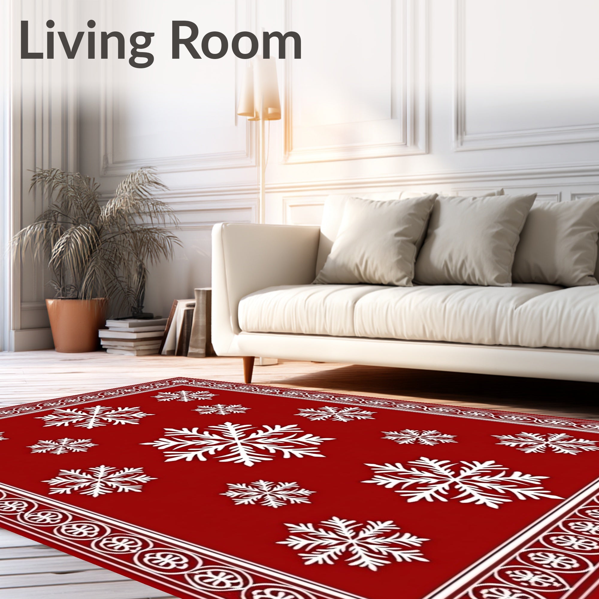 Ultra Soft Area Rug, Non Slip, Stain Resistant, Washable Area Rugs for Living Room, Bedroom, Festive Snowflake Medallion Winter Wonderland Elegant Decorative(Red) Overview: