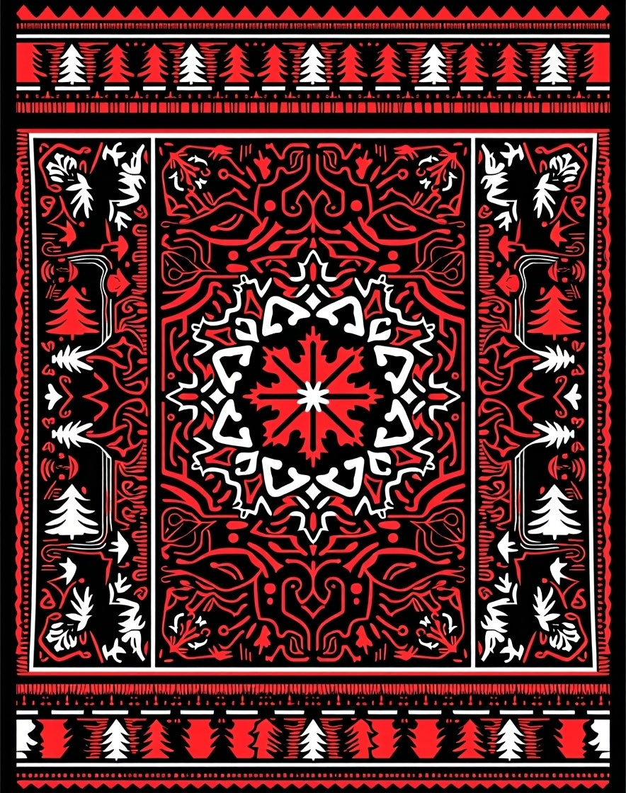 Festive Snowflake Medallion with Elegant Pine Tree Motifs(Black)