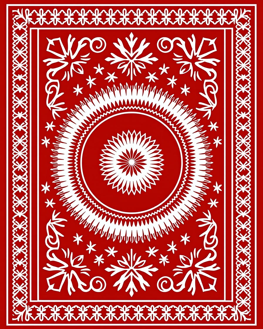 Ultra Soft Area Rug, Non Slip, Stain Resistant, Washable Area Rugs for Living Room, Bedroom, Festive Snowflake Medallion With Elegant Starbursts And Flourishes(Red) Overview: