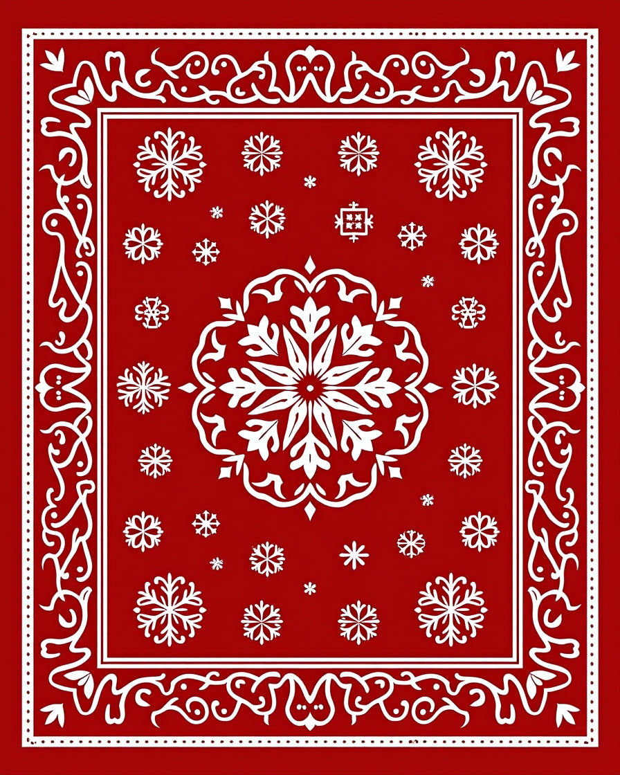 Festive Snowflake Medallion with Gold Accents and Elegant Swirls(Red)