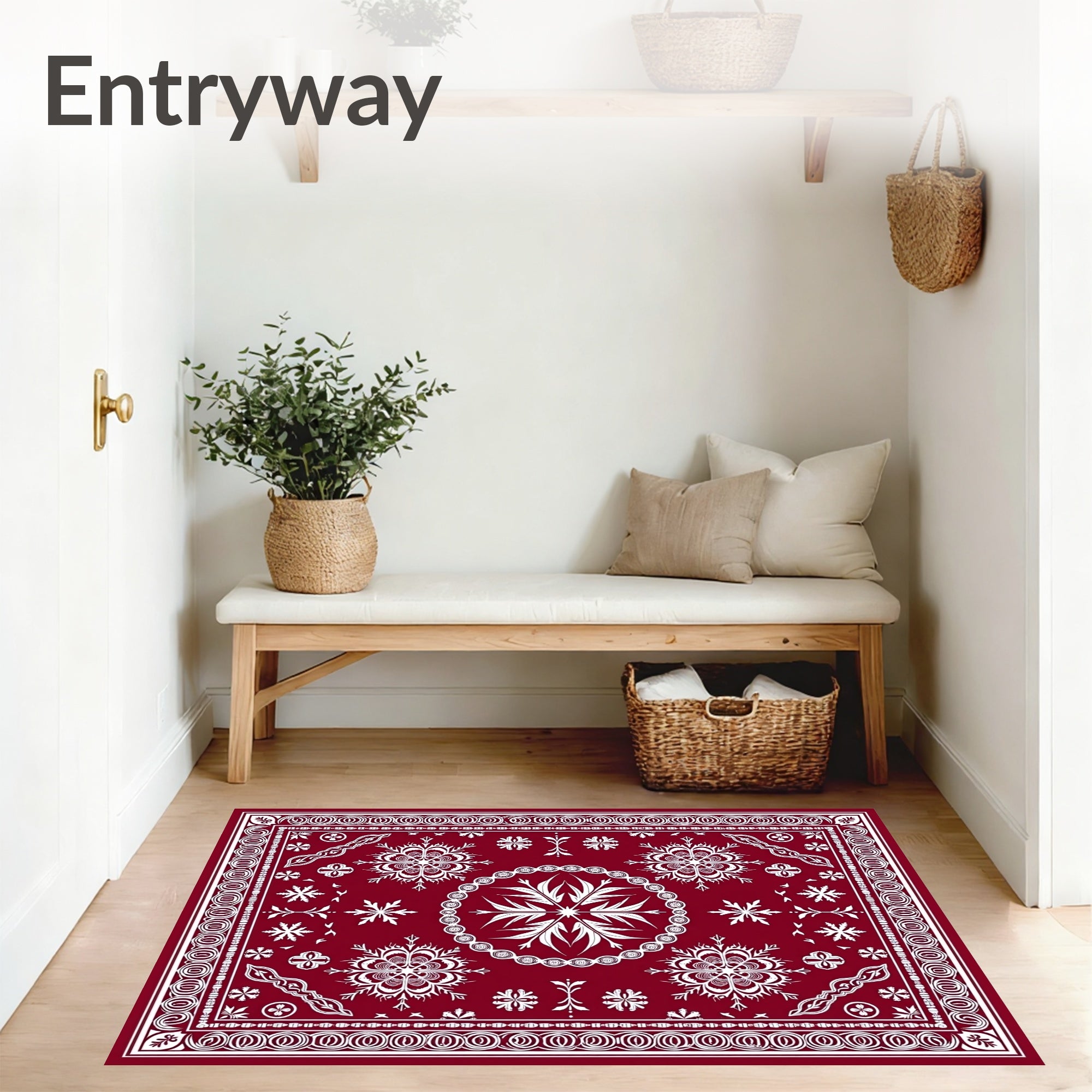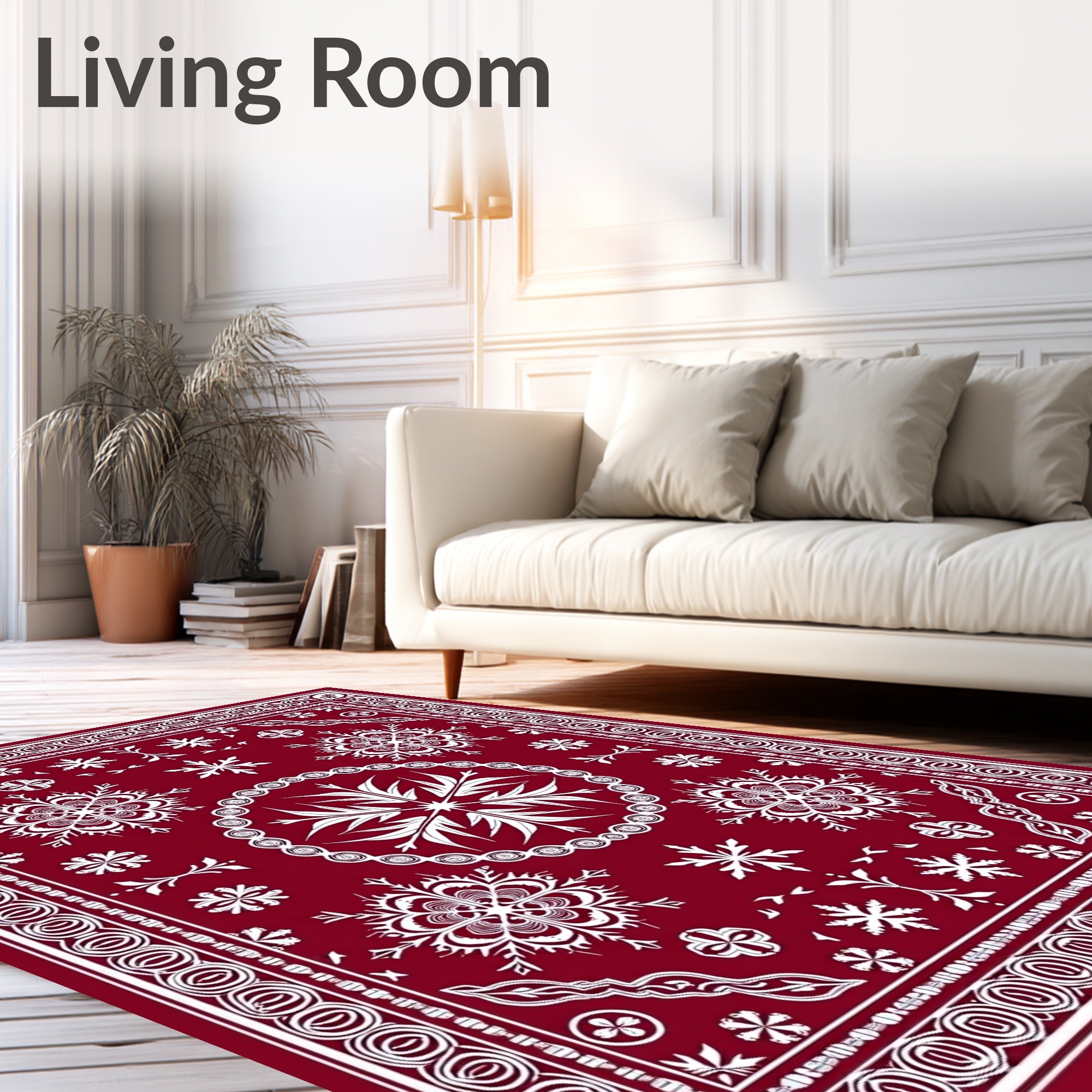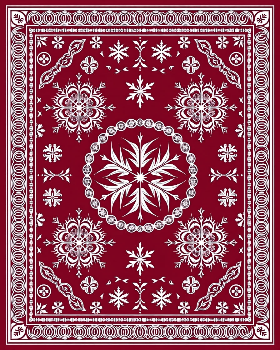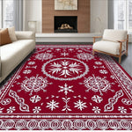Ultra Soft Area Rug, Non Slip, Stain Resistant, Washable Area Rugs for Living Room, Bedroom, Festive Snowflake Medallion with Intricate Crystal Motifs(Red) Overview:
