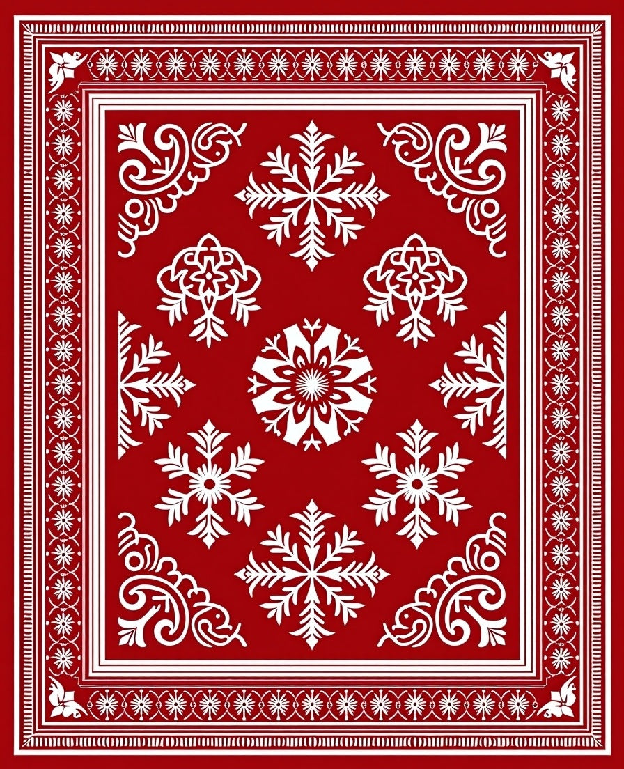 Festive Snowflake Medallion with Nordic Motifs(Red)