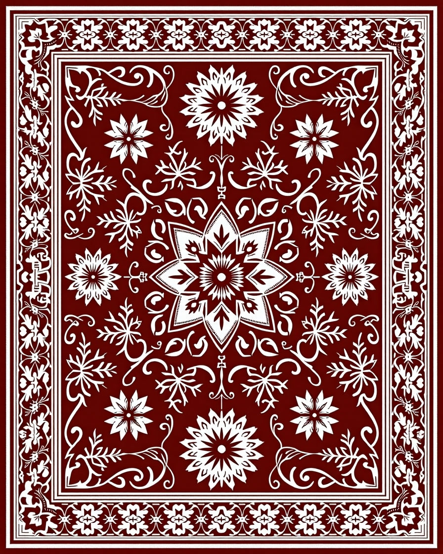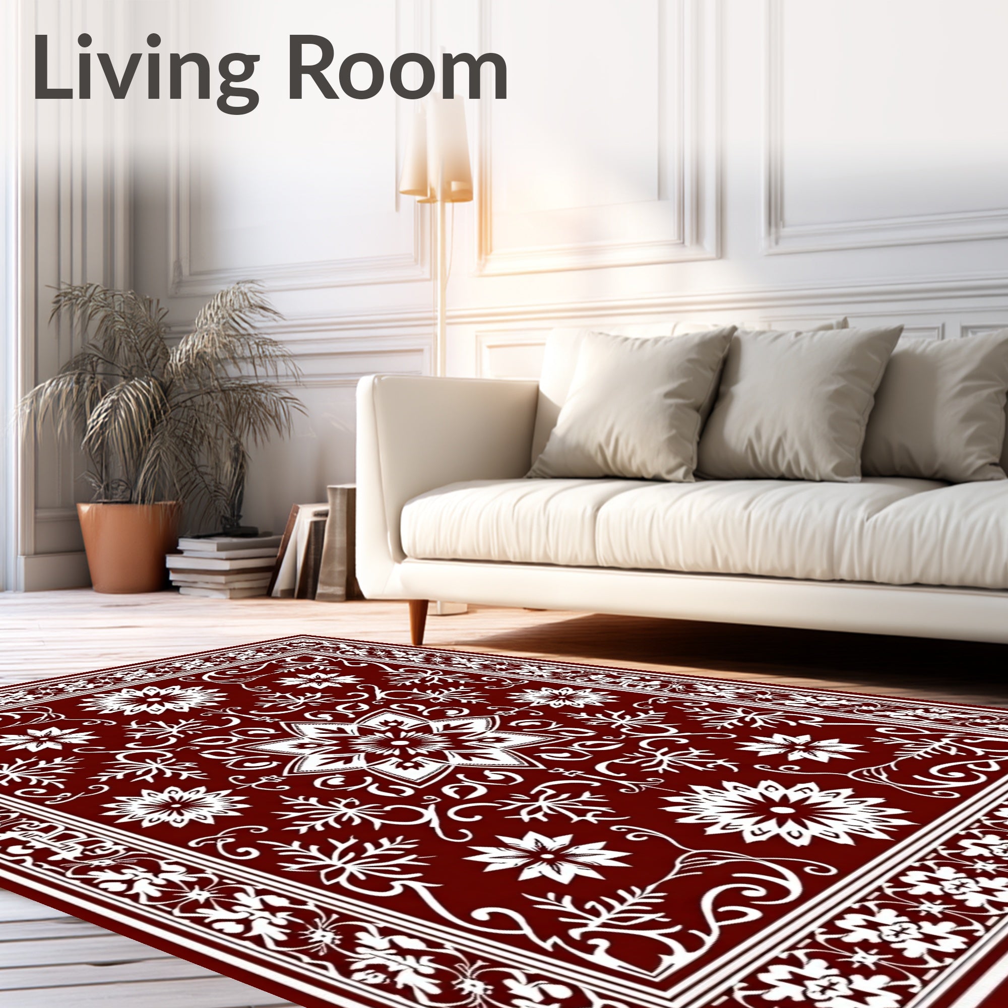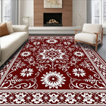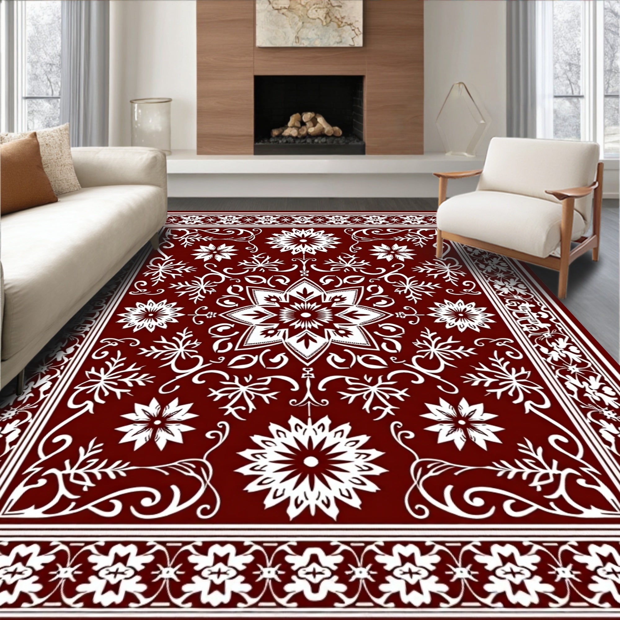 Ultra Soft Area Rug, Non Slip, Stain Resistant, Washable Area Rugs for Living Room, Bedroom, Festive Snowflake Medley with Nordic Inspired Swirls and Motifs(Red) Overview: