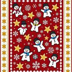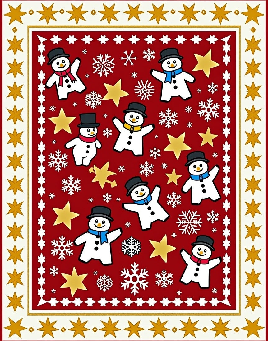 Festive Snowflake Parade with Dancing Snowmen and Starry Borders(Red)