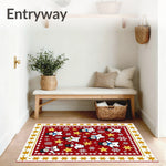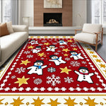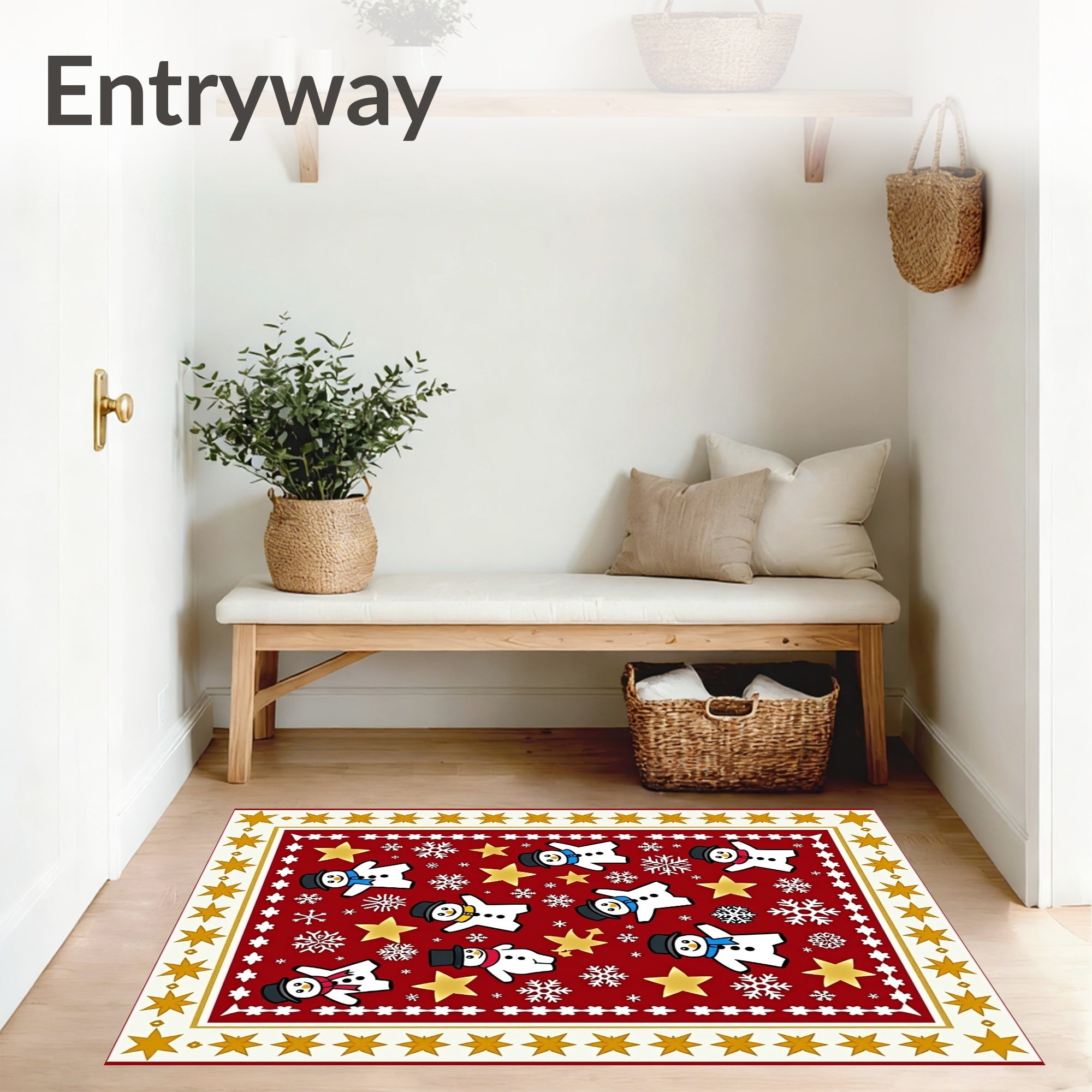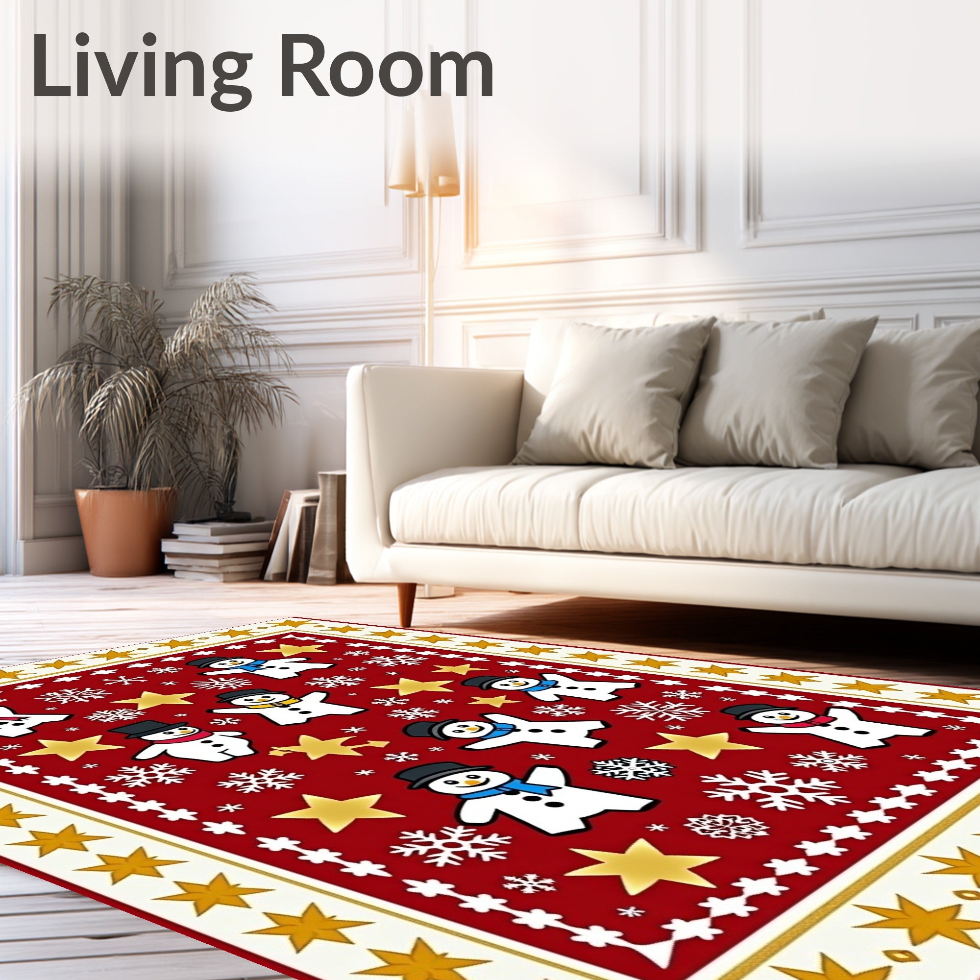 Ultra Soft Area Rug, Non Slip, Stain Resistant, Washable Area Rugs for Living Room, Bedroom, Festive Snowflake Parade with Dancing Snowmen and Starry Borders(Red) Overview: