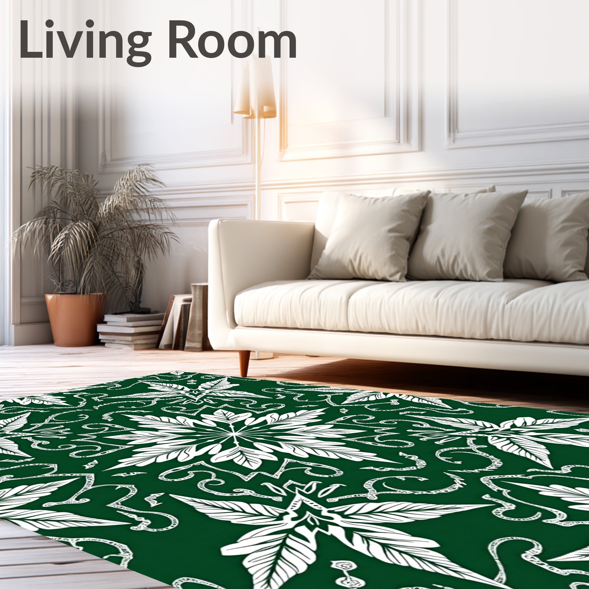 Ultra Soft Area Rug, Non Slip, Stain Resistant, Washable Area Rugs for Living Room, Bedroom, Festive Snowflake Swirl Decorative Holiday Accent(Green) Overview: