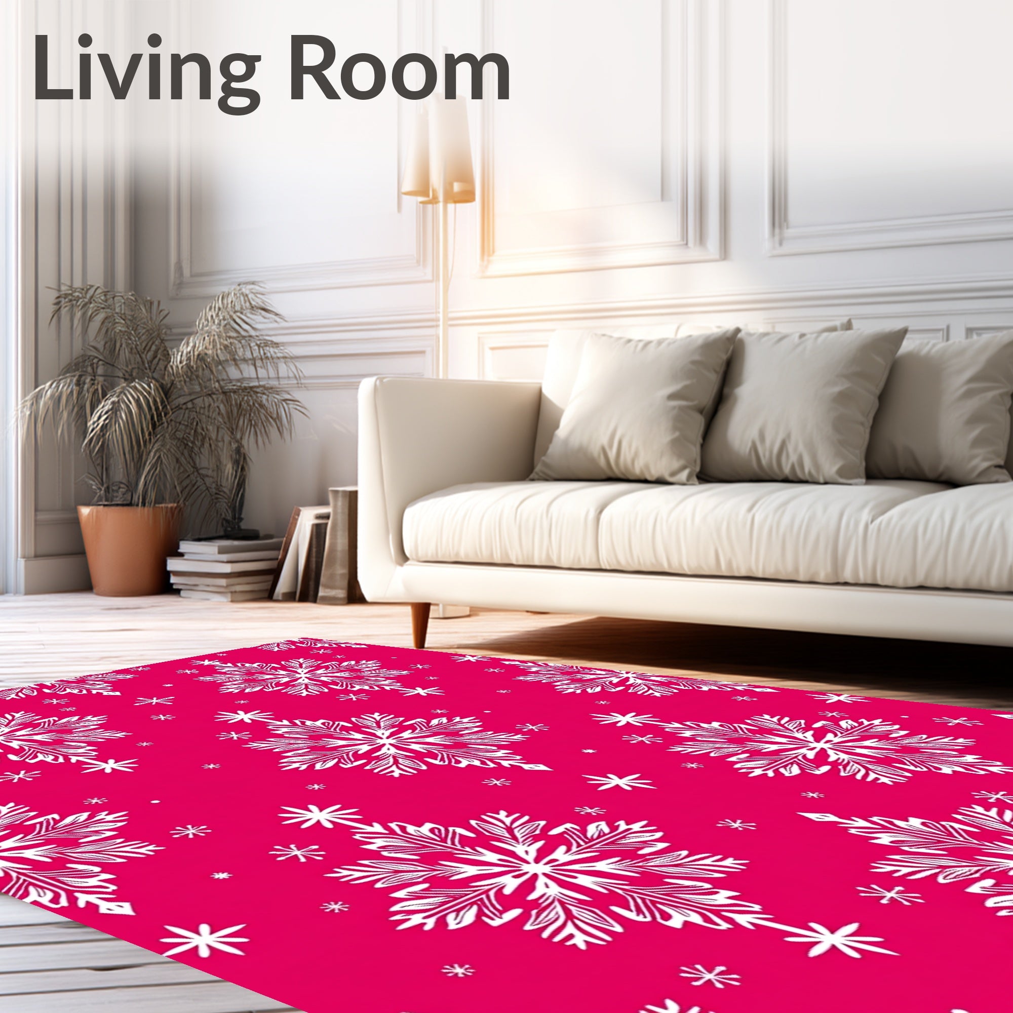 Ultra Soft Area Rug, Non Slip, Stain Resistant, Washable Area Rugs for Living Room, Bedroom, Festive Snowflake Symphony Accent Tapestry(Pink) Overview: