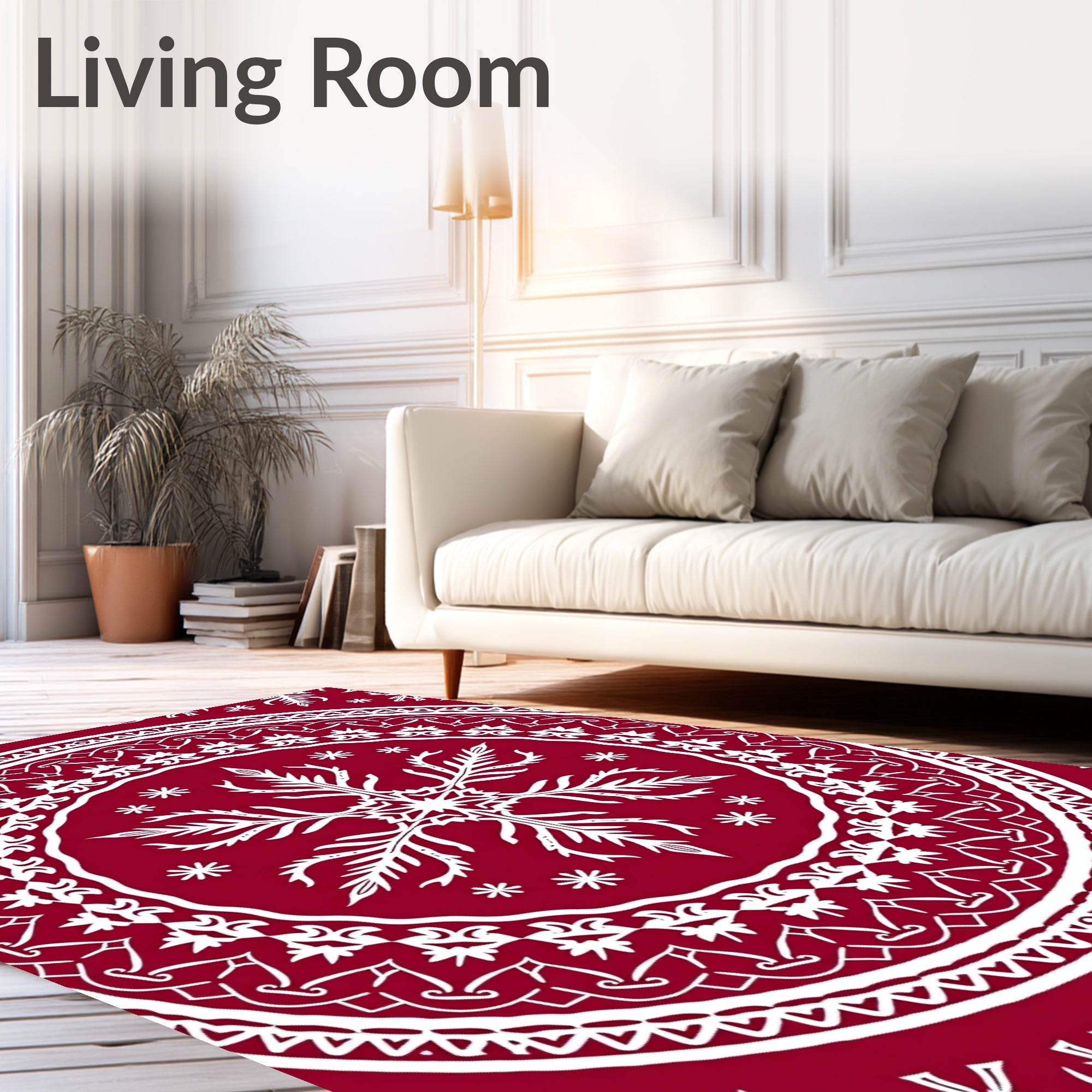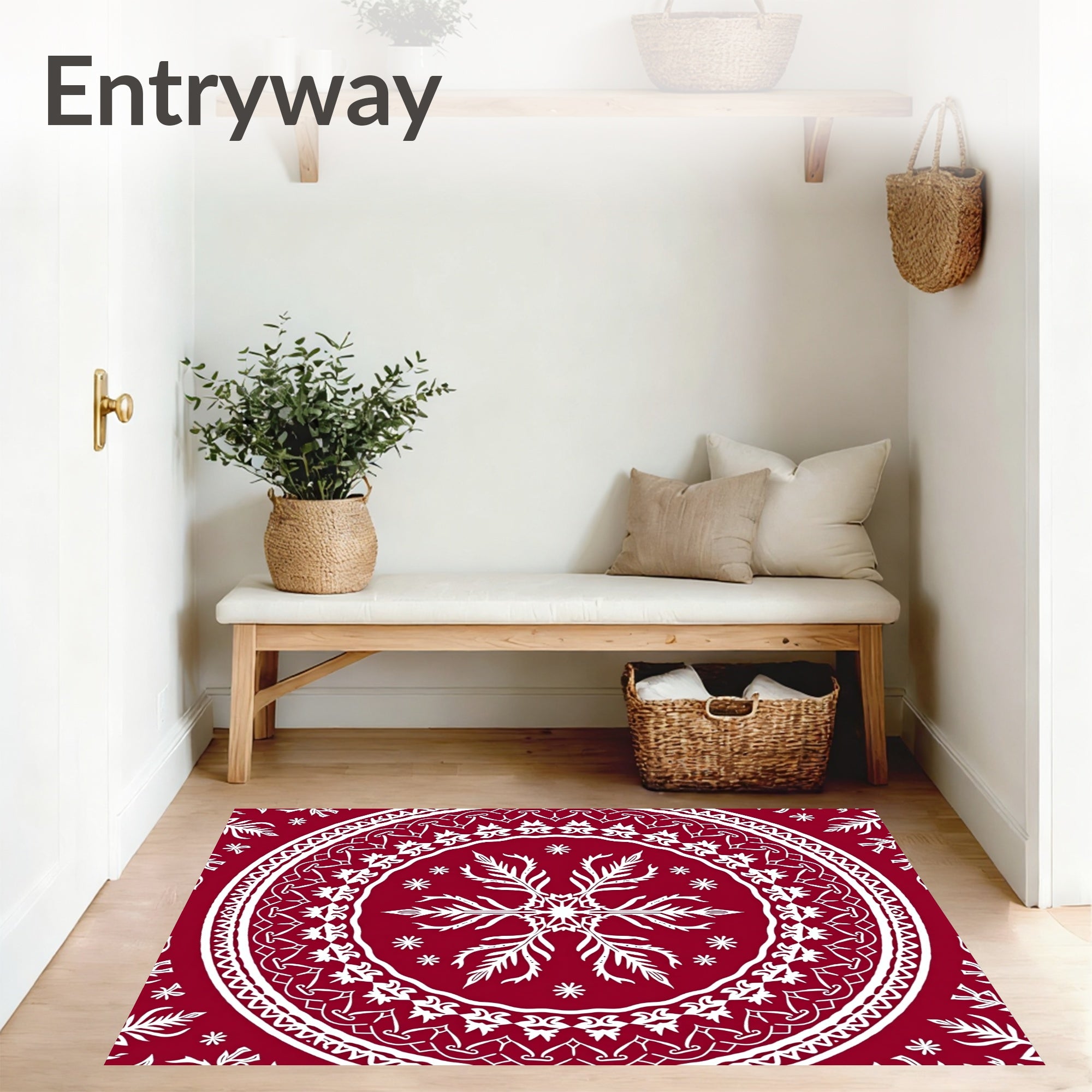 Ultra Soft Area Rug, Non Slip, Stain Resistant, Washable Area Rugs for Living Room, Bedroom, Festive Snowflake Winter Celebration Holiday Decorative Centerpiece(Red) Overview: