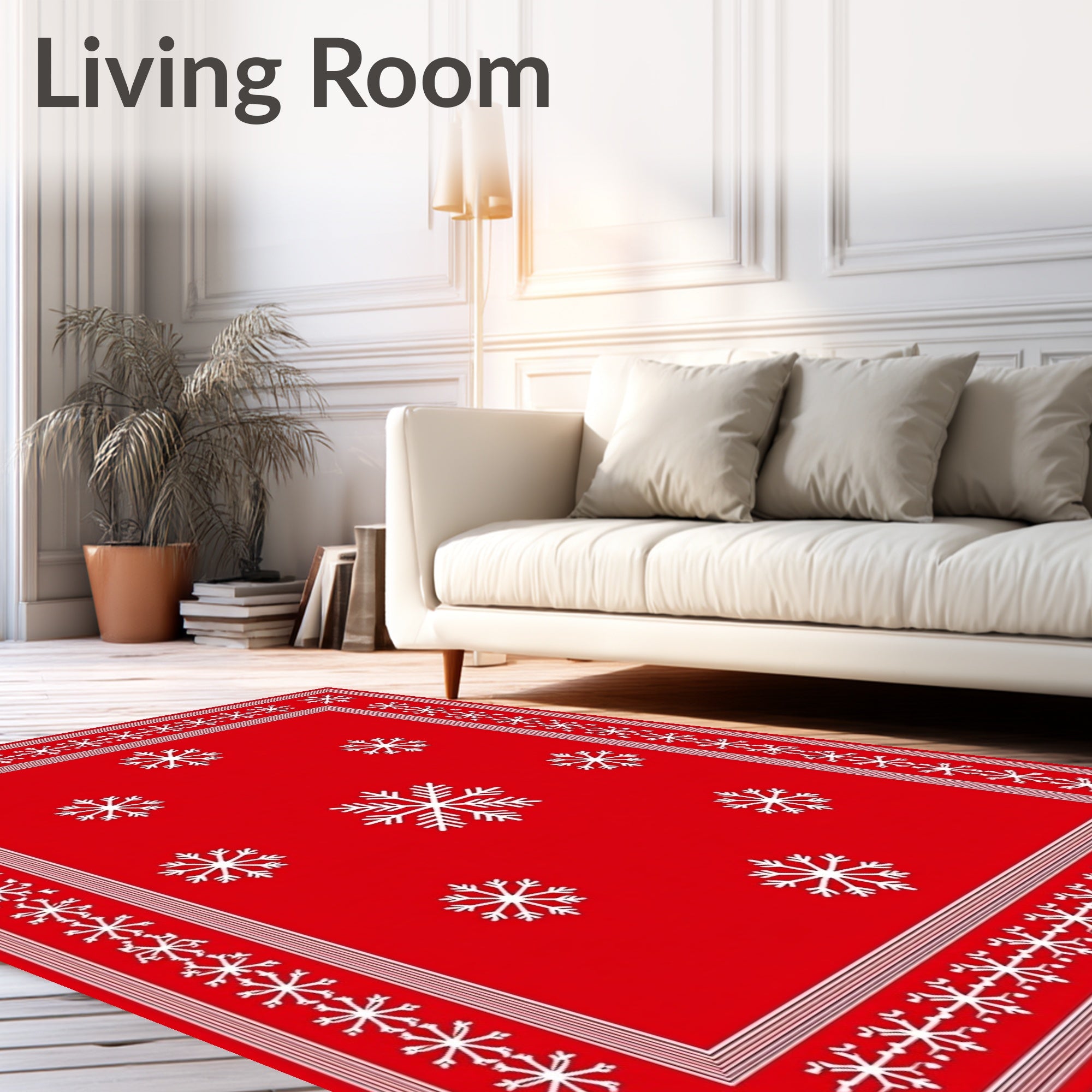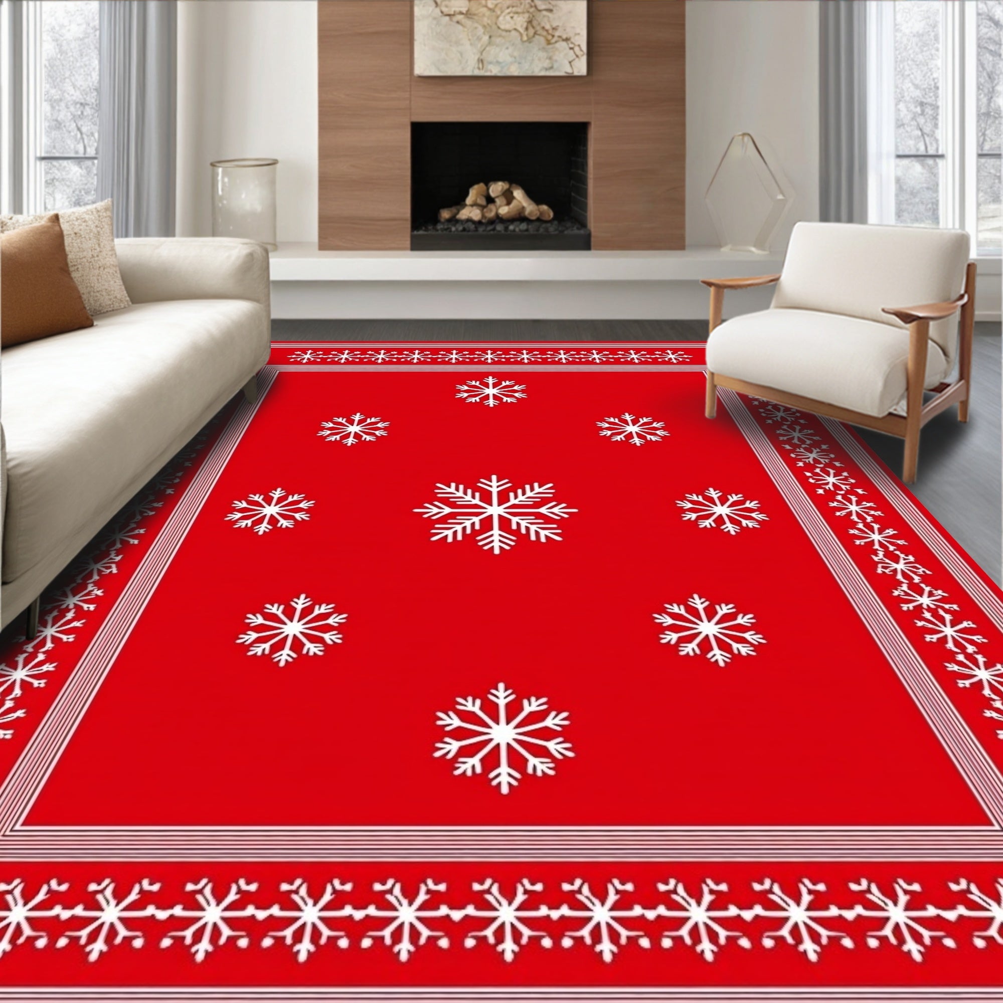 Ultra Soft Area Rug, Non Slip, Stain Resistant, Washable Area Rugs for Living Room, Bedroom, Festive Snowflake Winter Holiday Decorative Accent(Red) Overview: