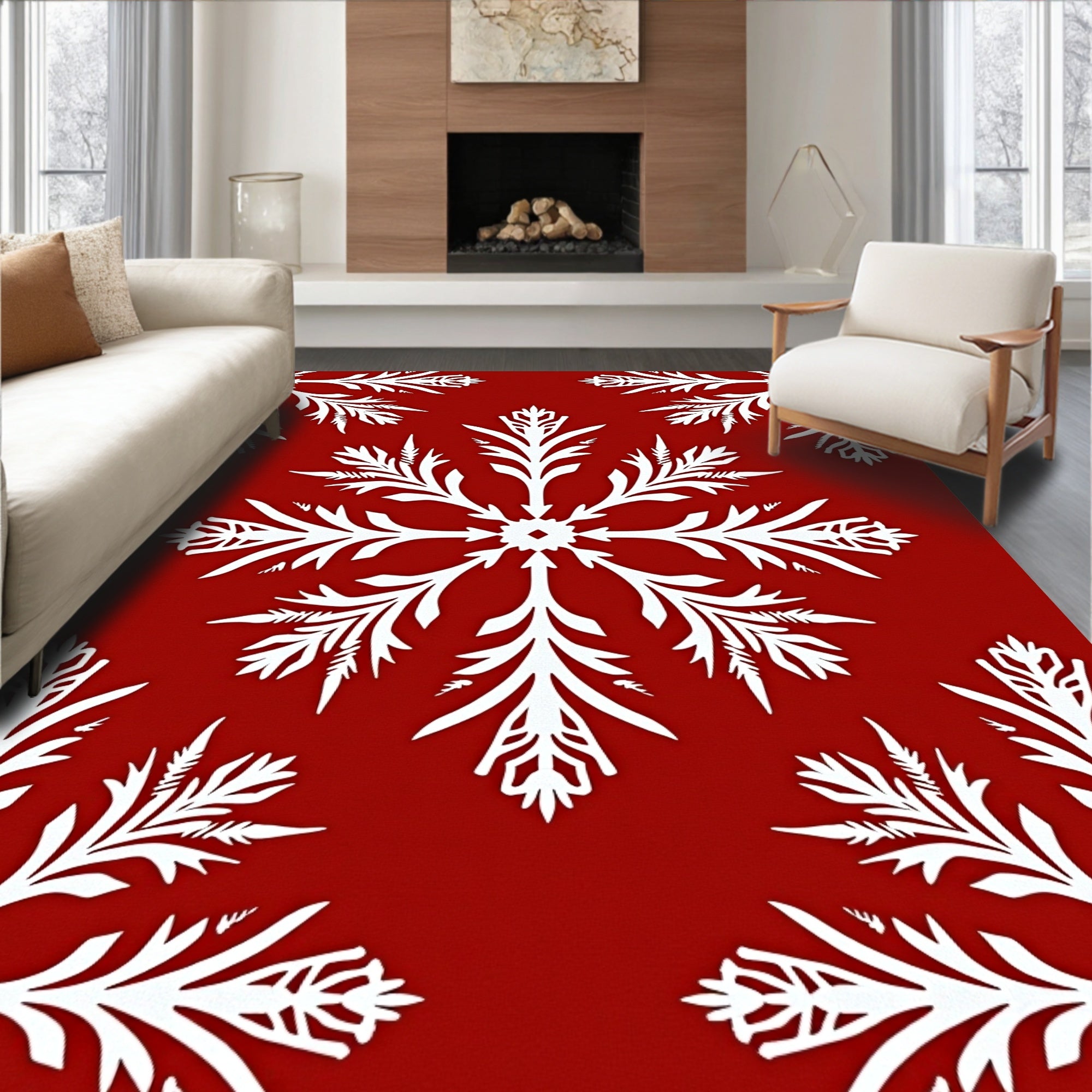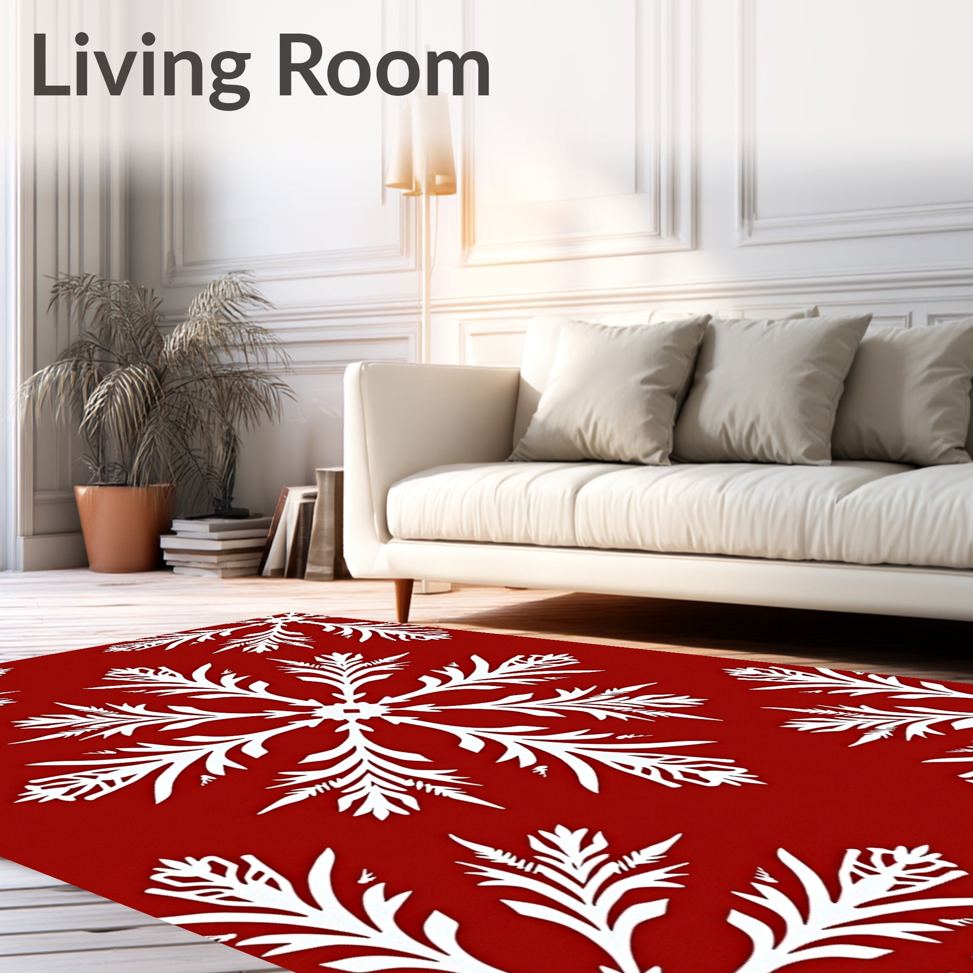 Ultra Soft Area Rug, Non Slip, Stain Resistant, Washable Area Rugs for Living Room, Bedroom, Festive Snowflake Winter Holiday Floor(Red) Overview: