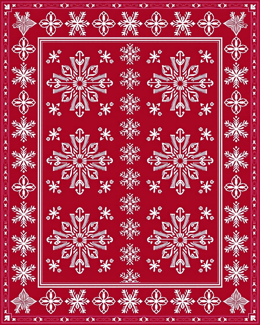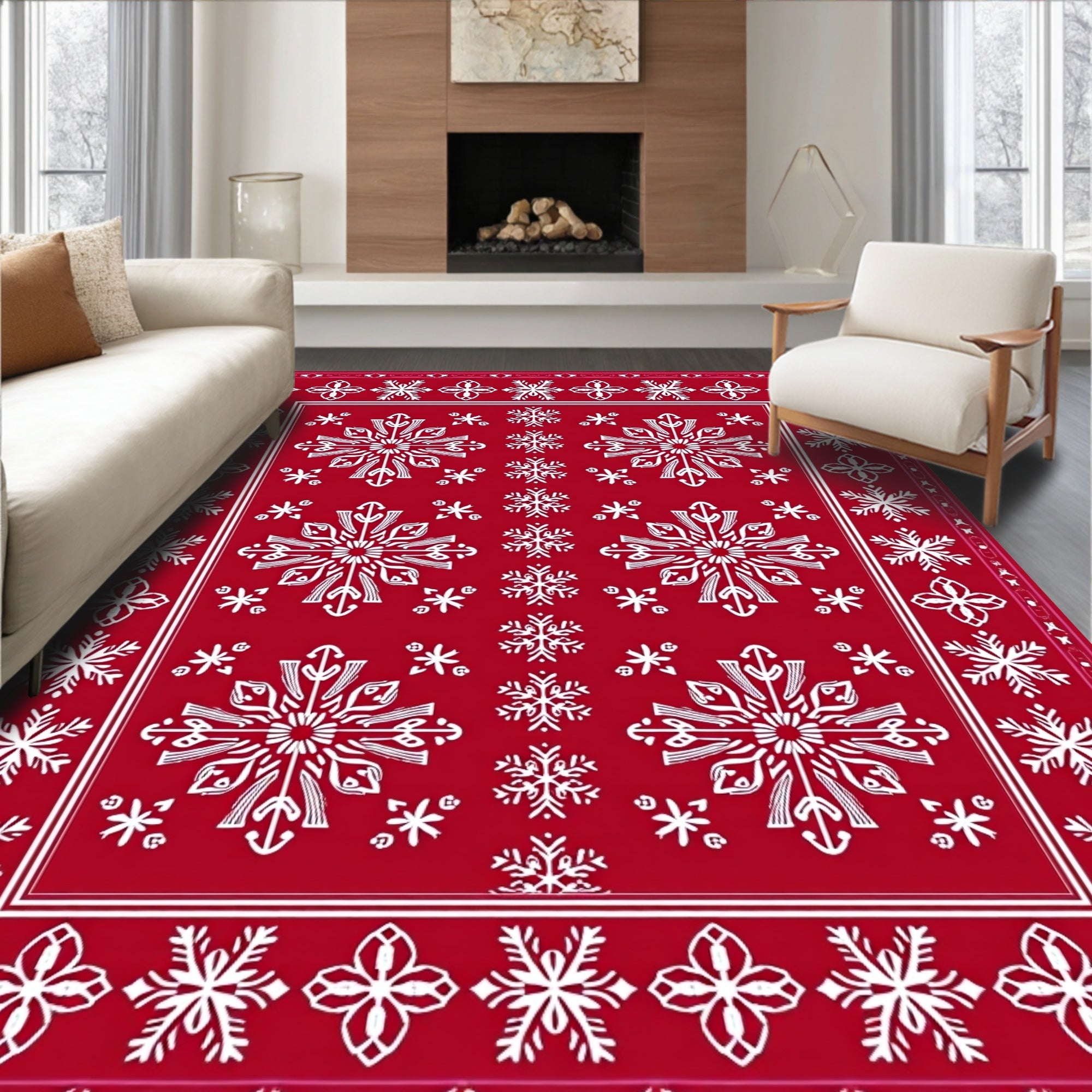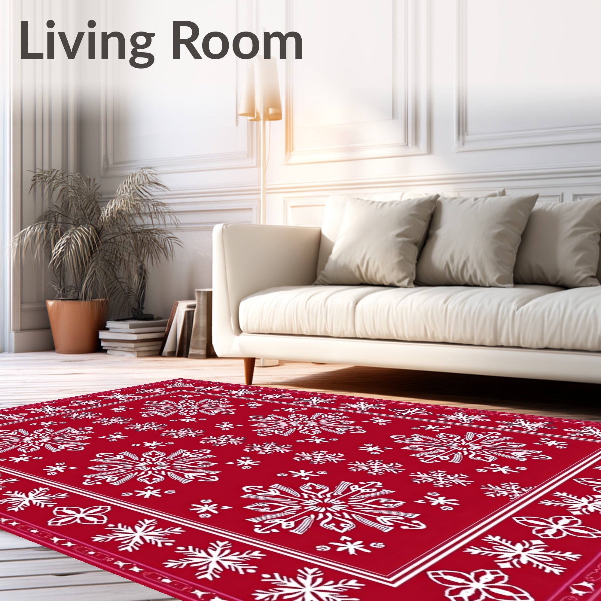 Flatwoven High Traffic Area Rug, Festive Snowflake Winter Holiday Wonderland Decorative Floor, Non Slip, Stain Resistant, Washable Area Rugs for Living Room, Bedroom (Red) Overview: