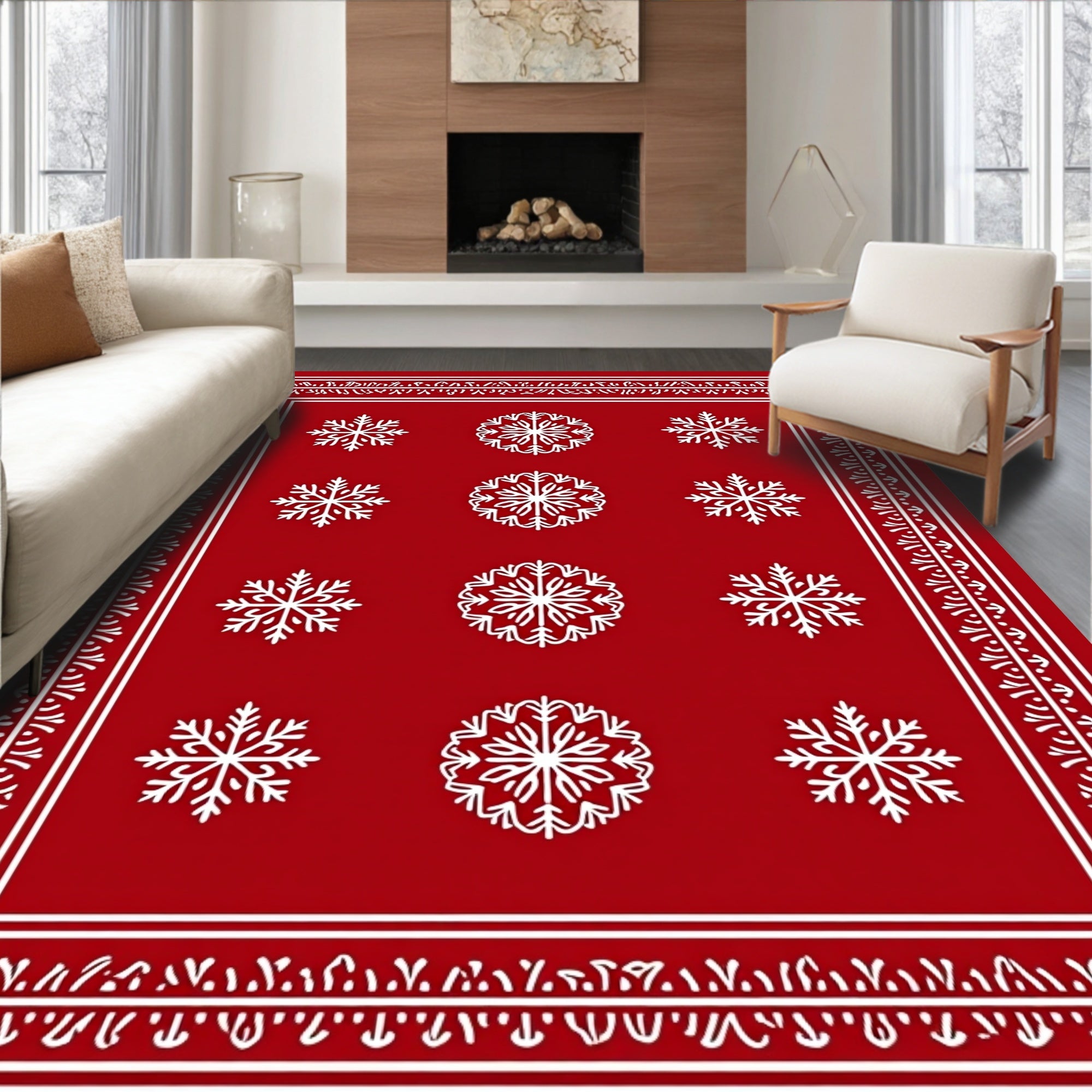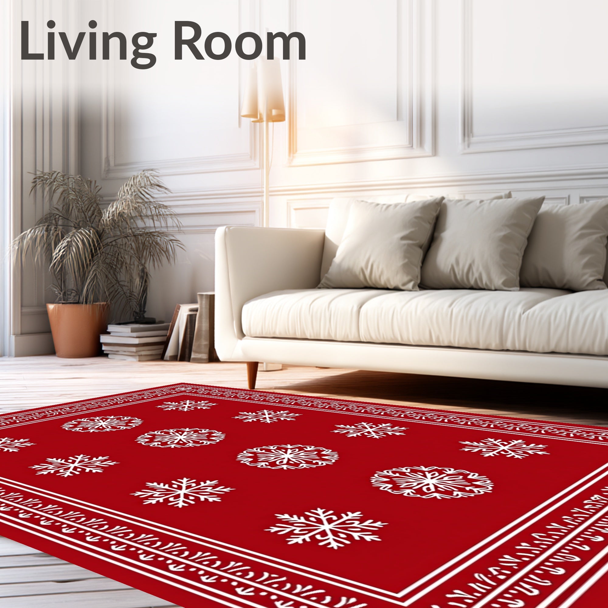 Ultra Soft Area Rug, Non Slip, Stain Resistant, Washable Area Rugs for Living Room, Bedroom, Festive Snowflake Winter Wonderland Holiday Celebration Decorative(Red) Overview: