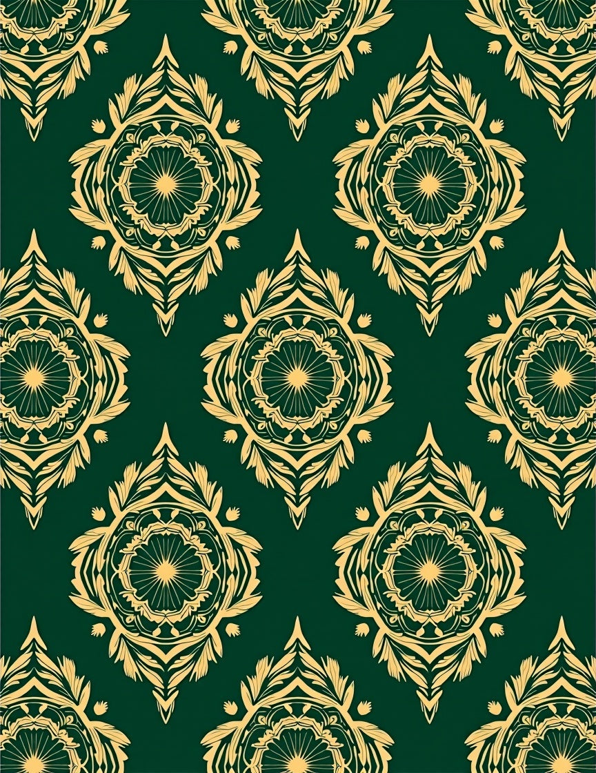 Festive Starburst Medallion and Evergreen Inspired Interlocking Design(Green)