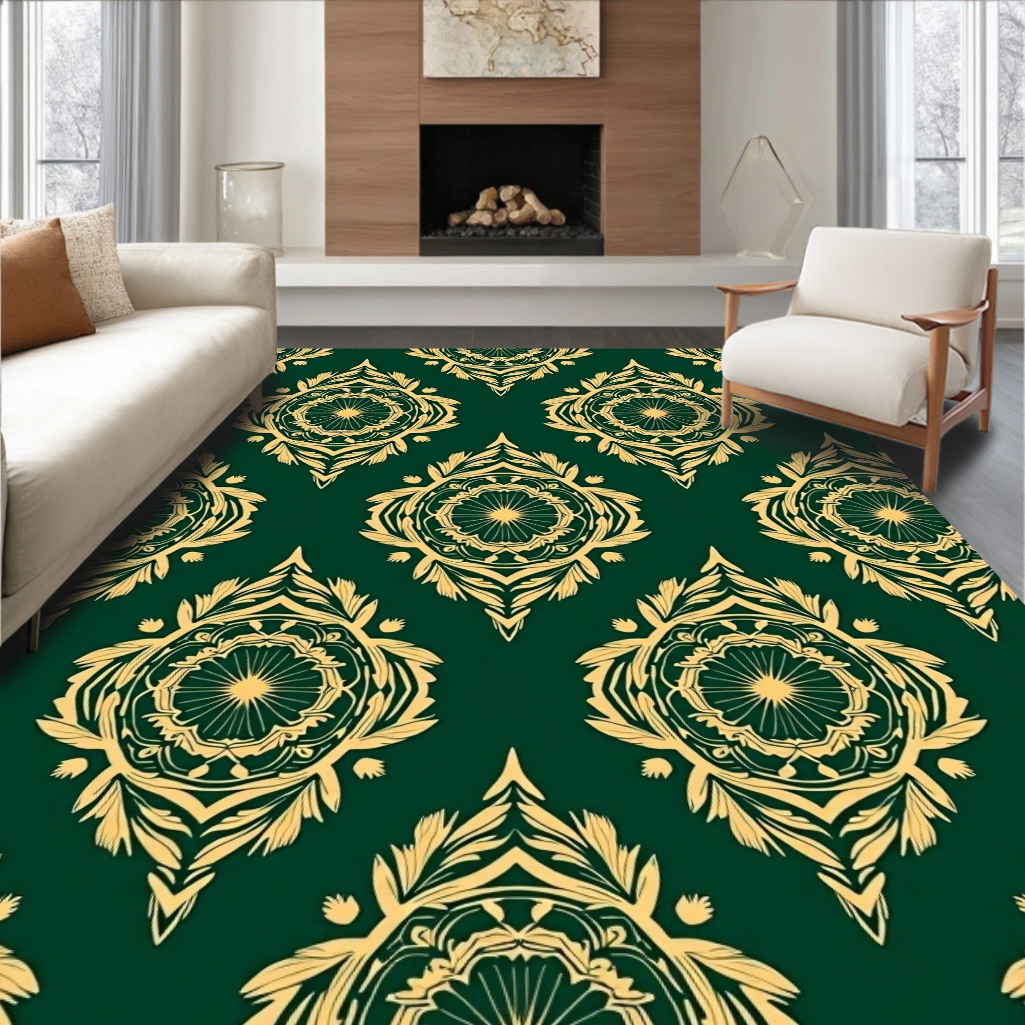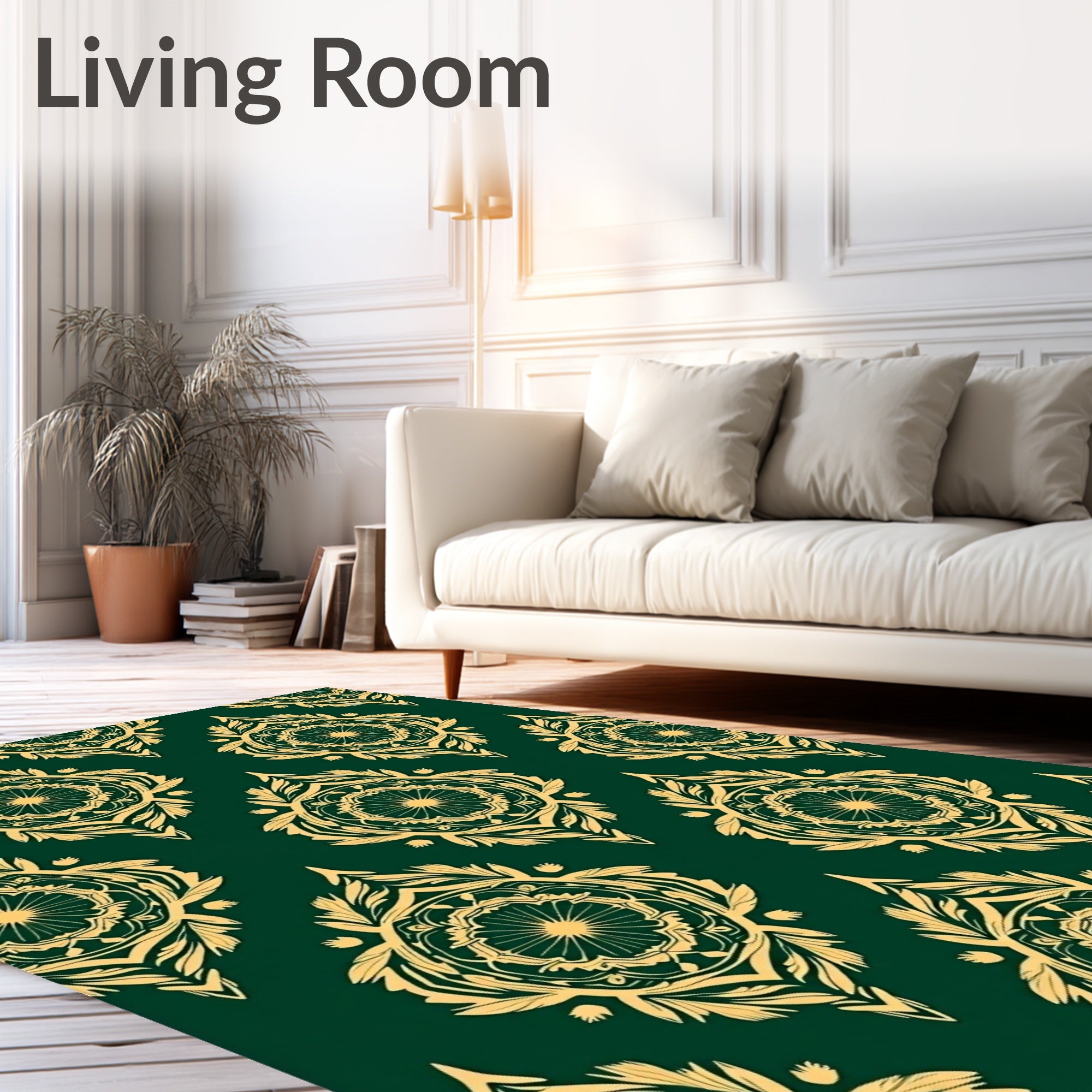Ultra Soft Area Rug, Non Slip, Stain Resistant, Washable Area Rugs for Living Room, Bedroom, Festive Starburst Medallion and Evergreen Inspired Interlocking Design(Green) Overview:
