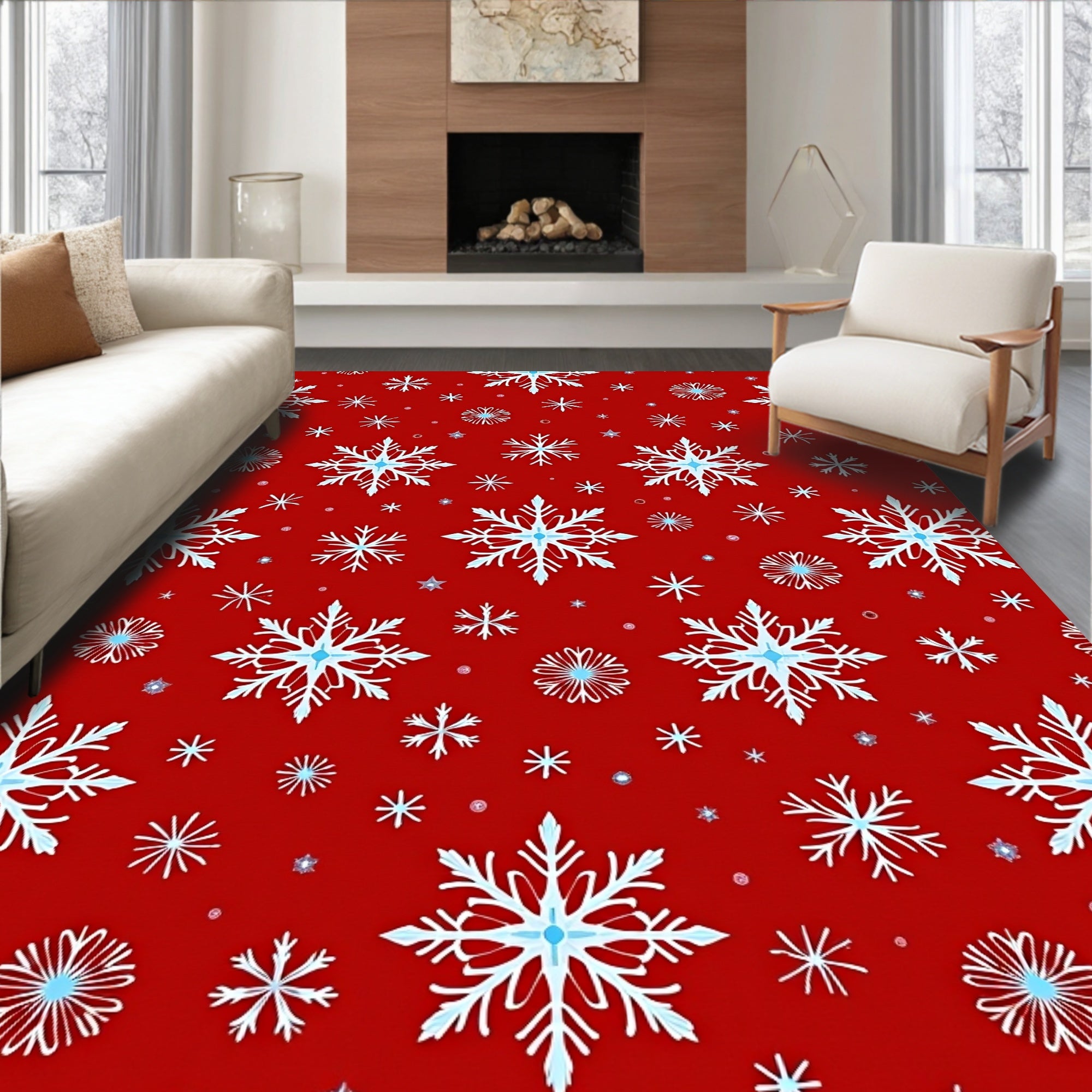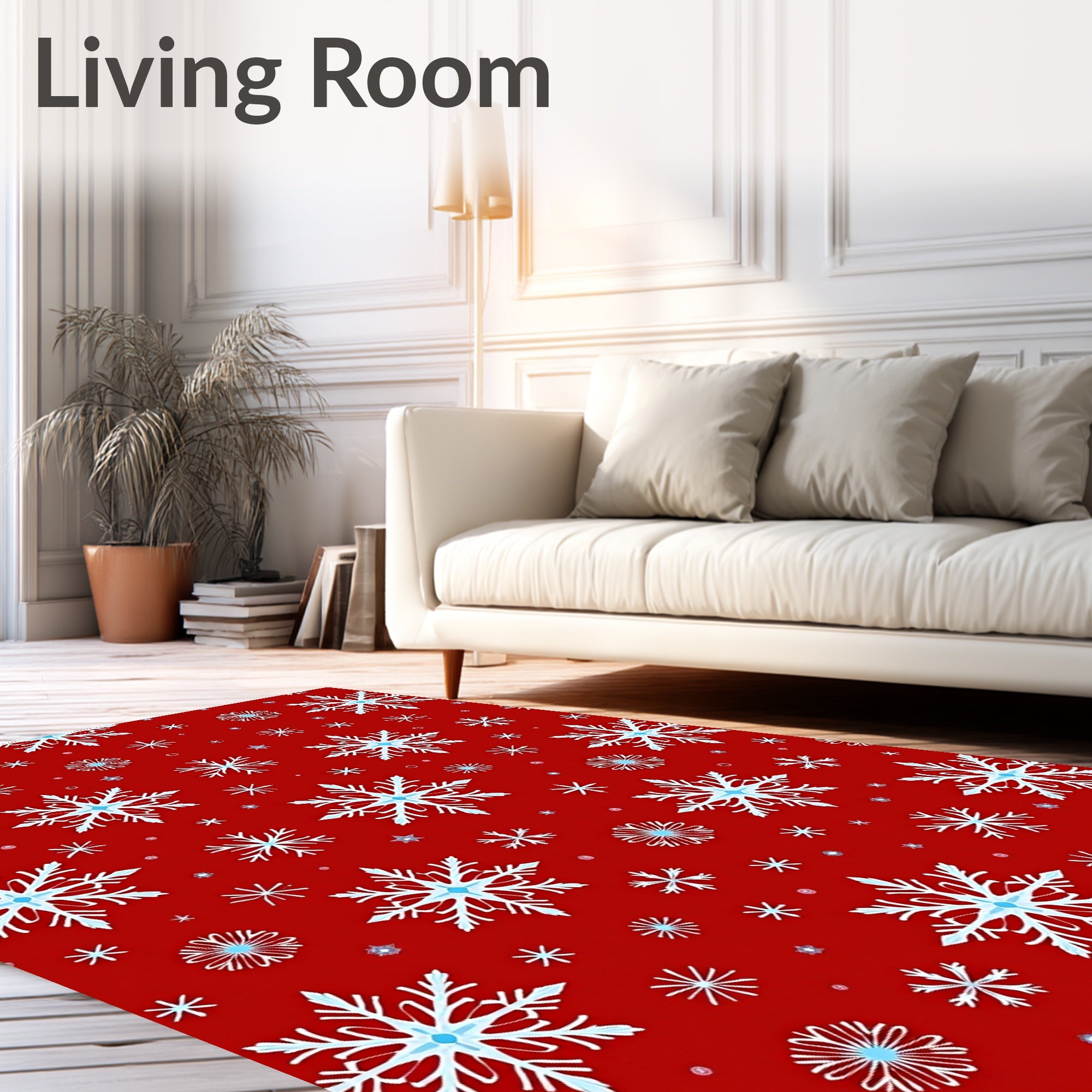 Ultra Soft Area Rug, Non Slip, Stain Resistant, Washable Area Rugs for Living Room, Bedroom, Festive Starlit Snowflake Interlocking Celebration(Red) Overview: