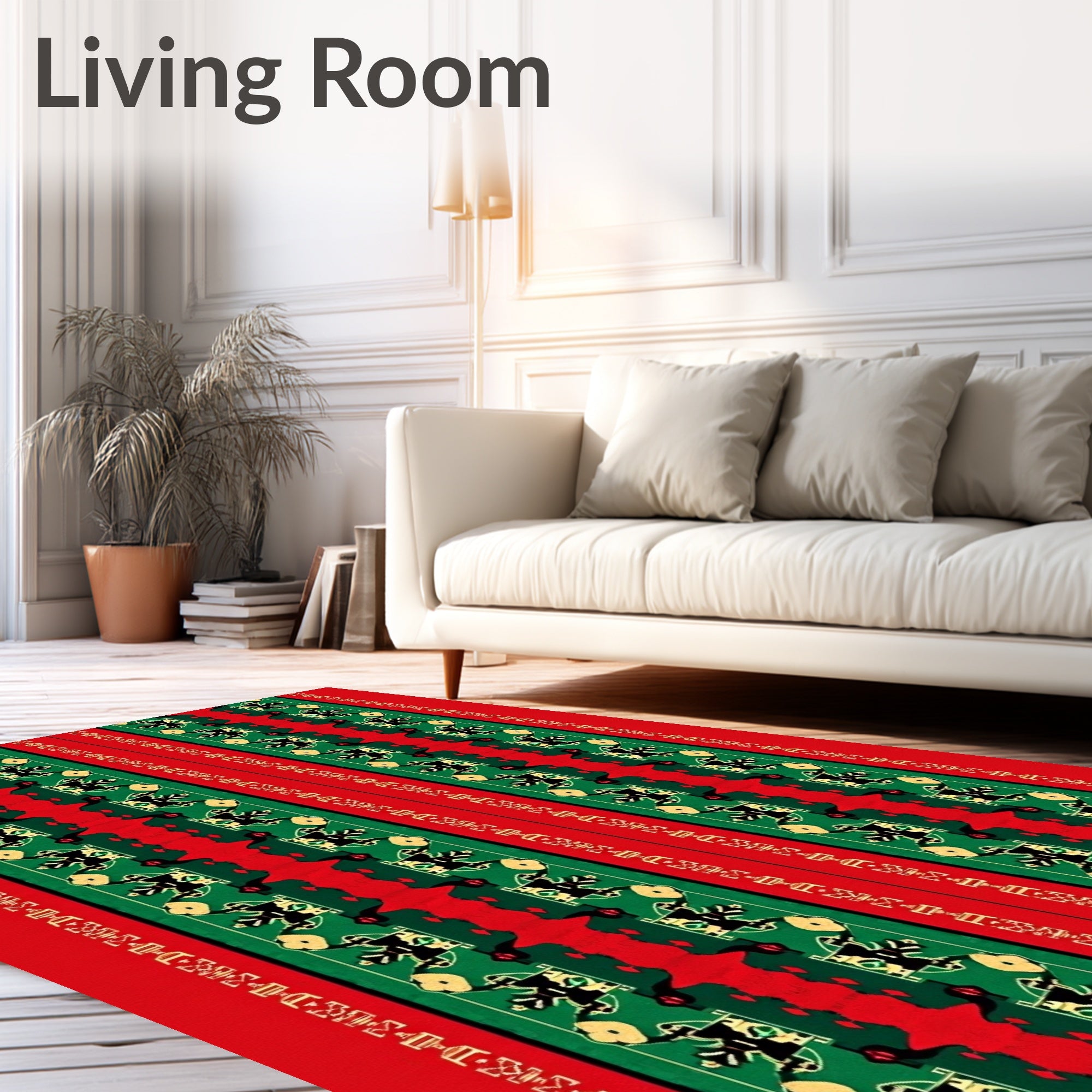 Ultra Soft Area Rug, Non Slip, Stain Resistant, Washable Area Rugs for Living Room, Bedroom, Festive Stripe Illusion with Bold Contrast and Classic Holiday Motifs(Red) Overview: