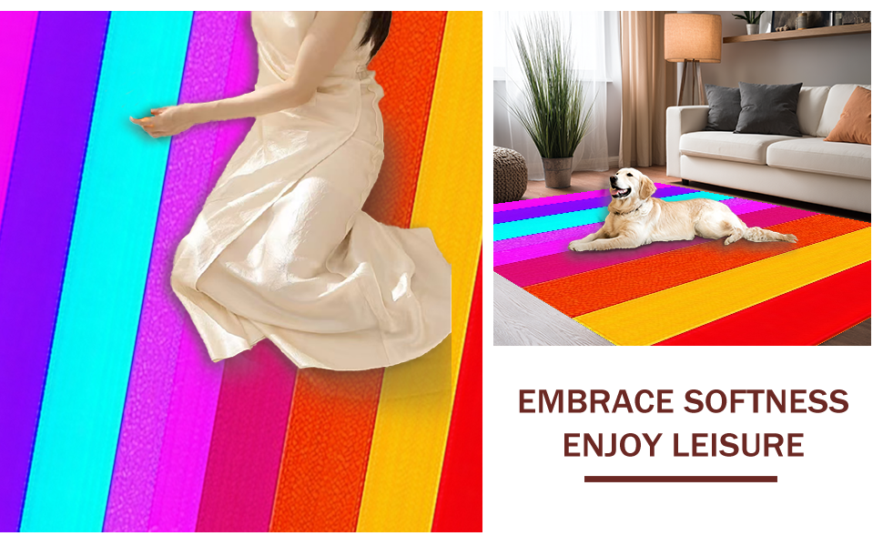 Ultra Soft Area Rug, Non Slip, Stain Resistant, Washable Area Rugs for Living Room, Bedroom, Festive Striped Contemporary Motif(Red) Overview: