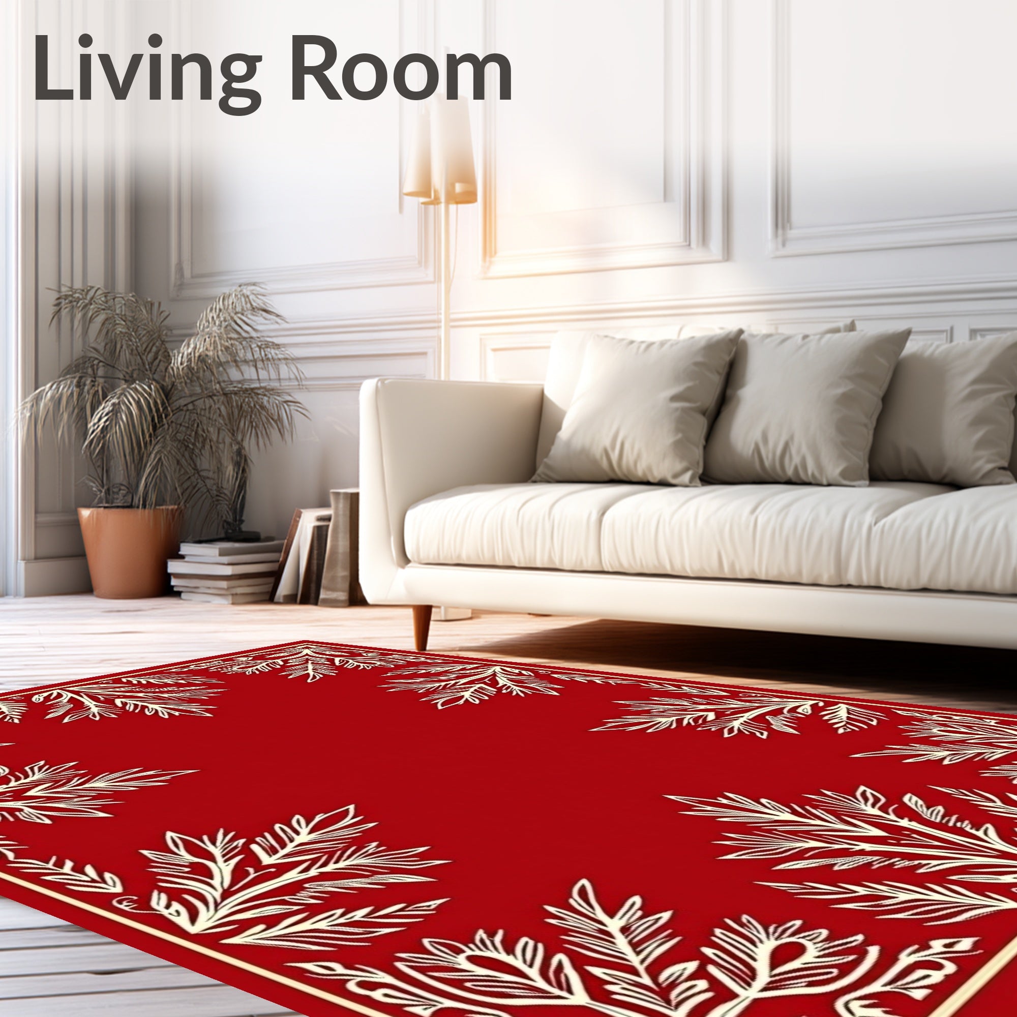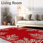 Ultra Soft Area Rug, Non Slip, Stain Resistant, Washable Area Rugs for Living Room, Bedroom, Festive Stylized Pine and Snow Crystal Array(Red) Overview: