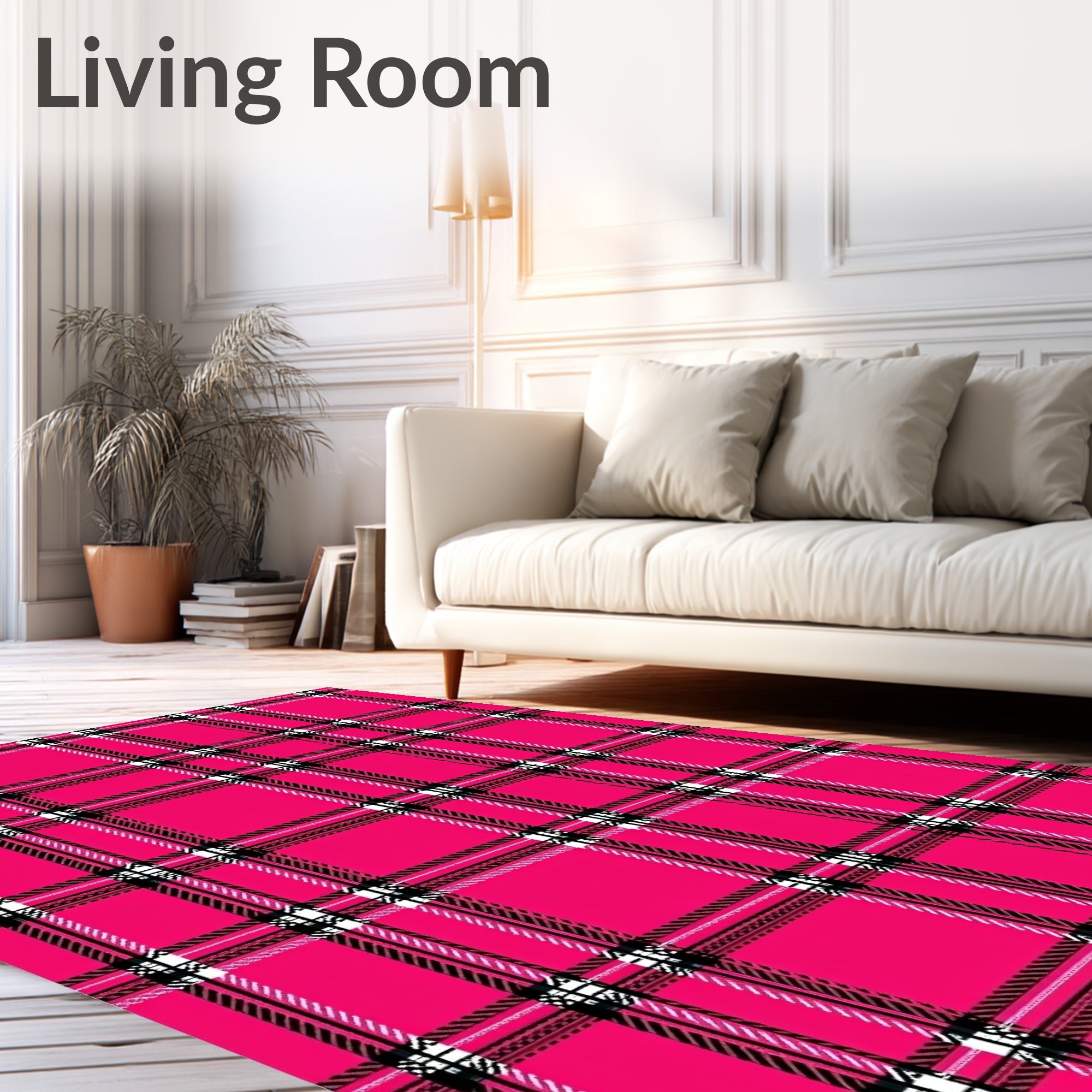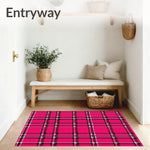 Ultra Soft Area Rug, Non Slip, Stain Resistant, Washable Area Rugs for Living Room, Bedroom, Festive Tartan Accent Featuring Crosshatch Grid Motifs(Pink) Overview: