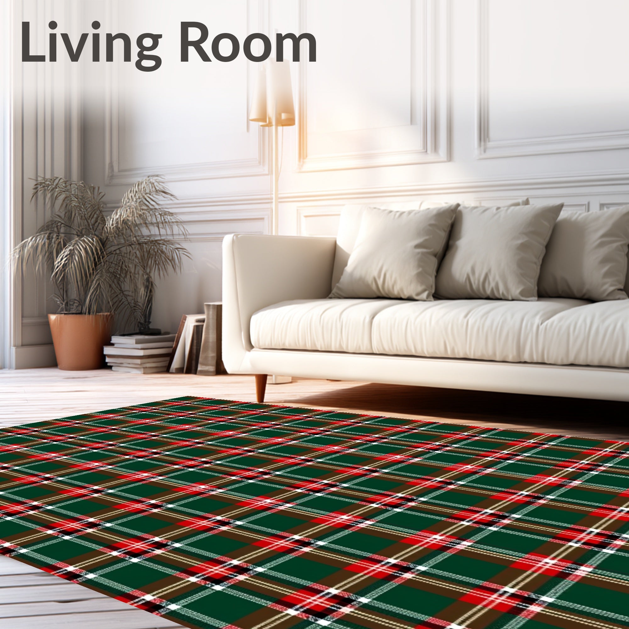 Ultra Soft Area Rug, Non Slip, Stain Resistant, Washable Area Rugs for Living Room, Bedroom, Festive Tartan Holiday Accent(Green) Overview: