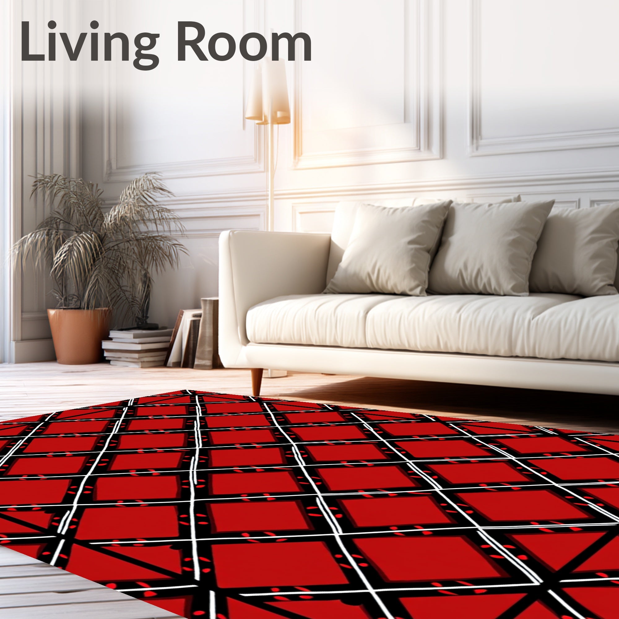 Ultra Soft Area Rug, Non Slip, Stain Resistant, Washable Area Rugs for Living Room, Bedroom, Festive Tartan Lattice Decorative Holiday Plaid(Red) Overview:
