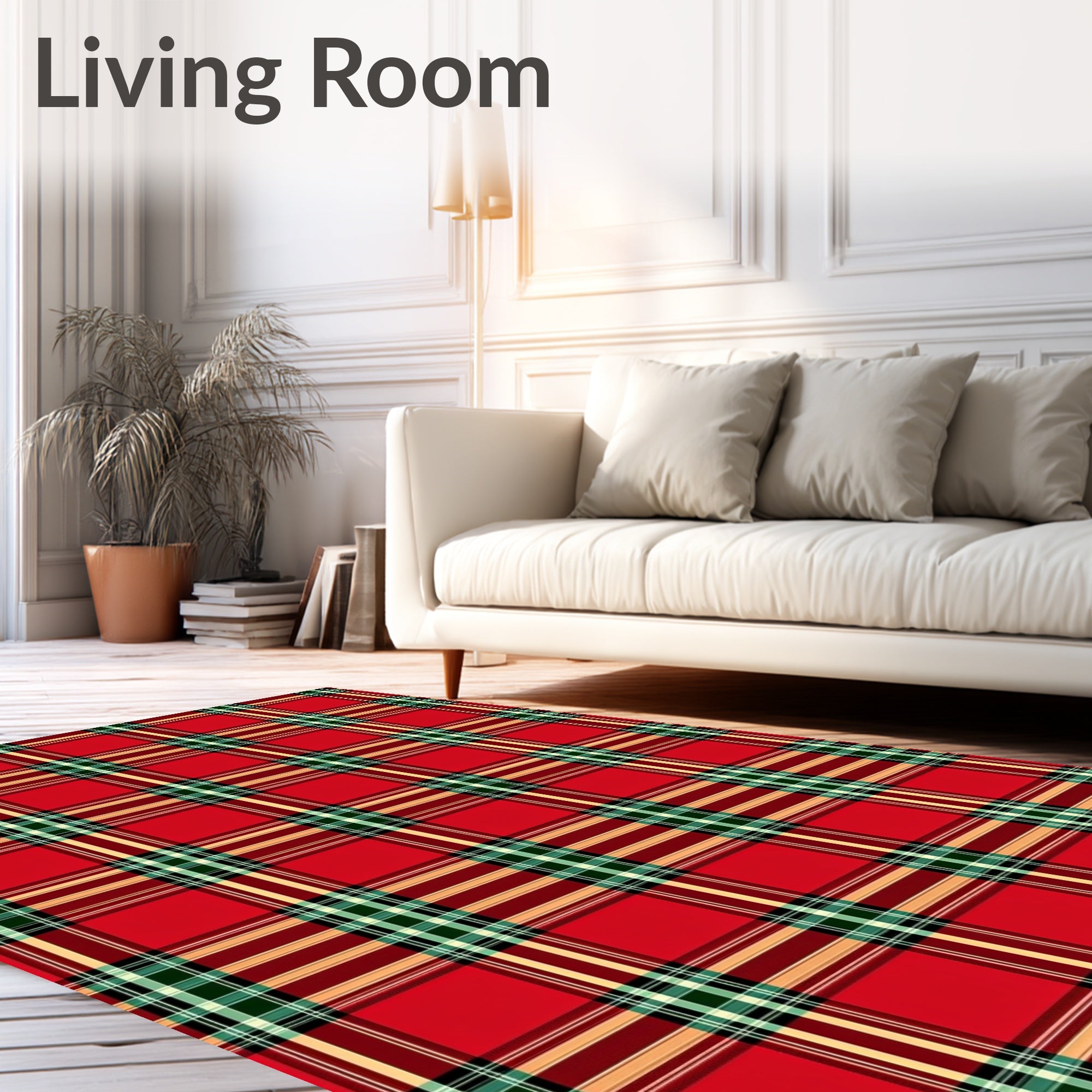 Ultra Soft Area Rug, Non Slip, Stain Resistant, Washable Area Rugs for Living Room, Bedroom, Festive Tartan Plaid Featuring Traditional Holiday Crosshatch Motifs(Red) Overview: