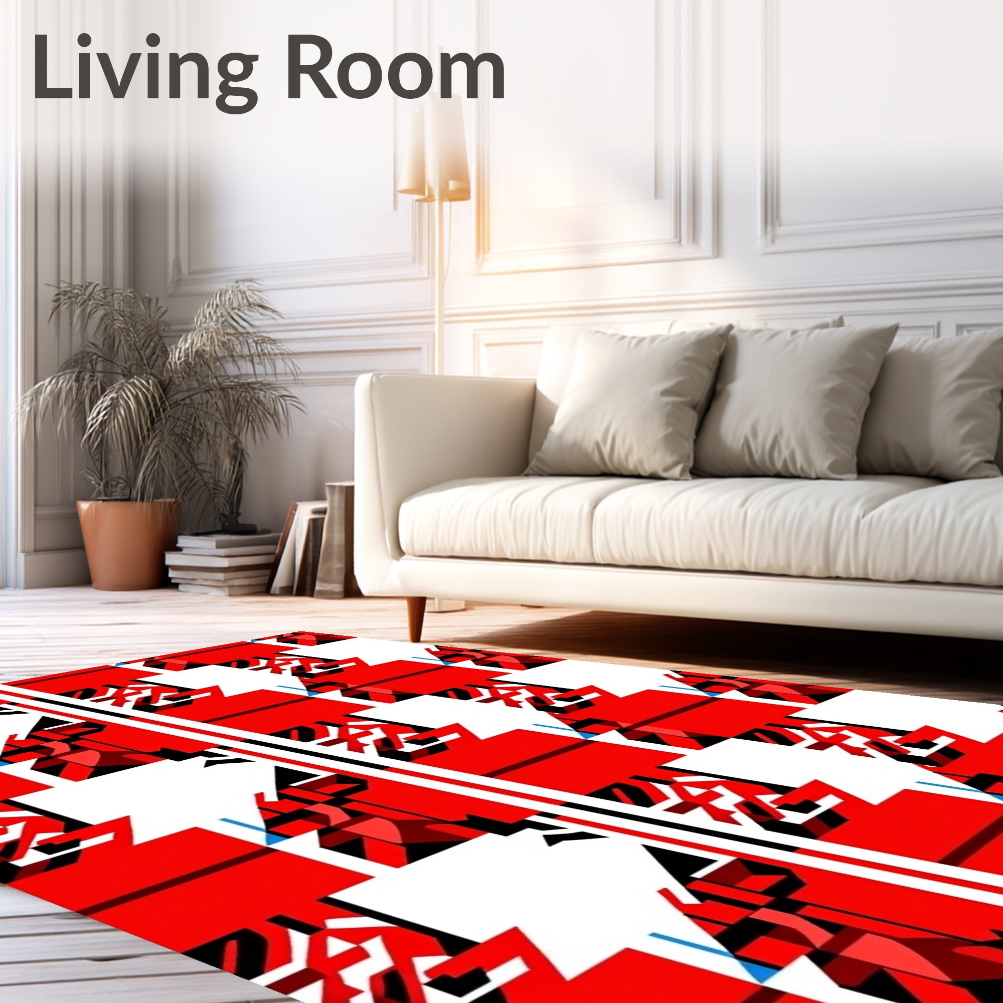 Ultra Soft Area Rug, Non Slip, Stain Resistant, Washable Area Rugs for Living Room, Bedroom, Festive Tartan with Distinctive Alternating Blocks and Accents(Red) Overview: