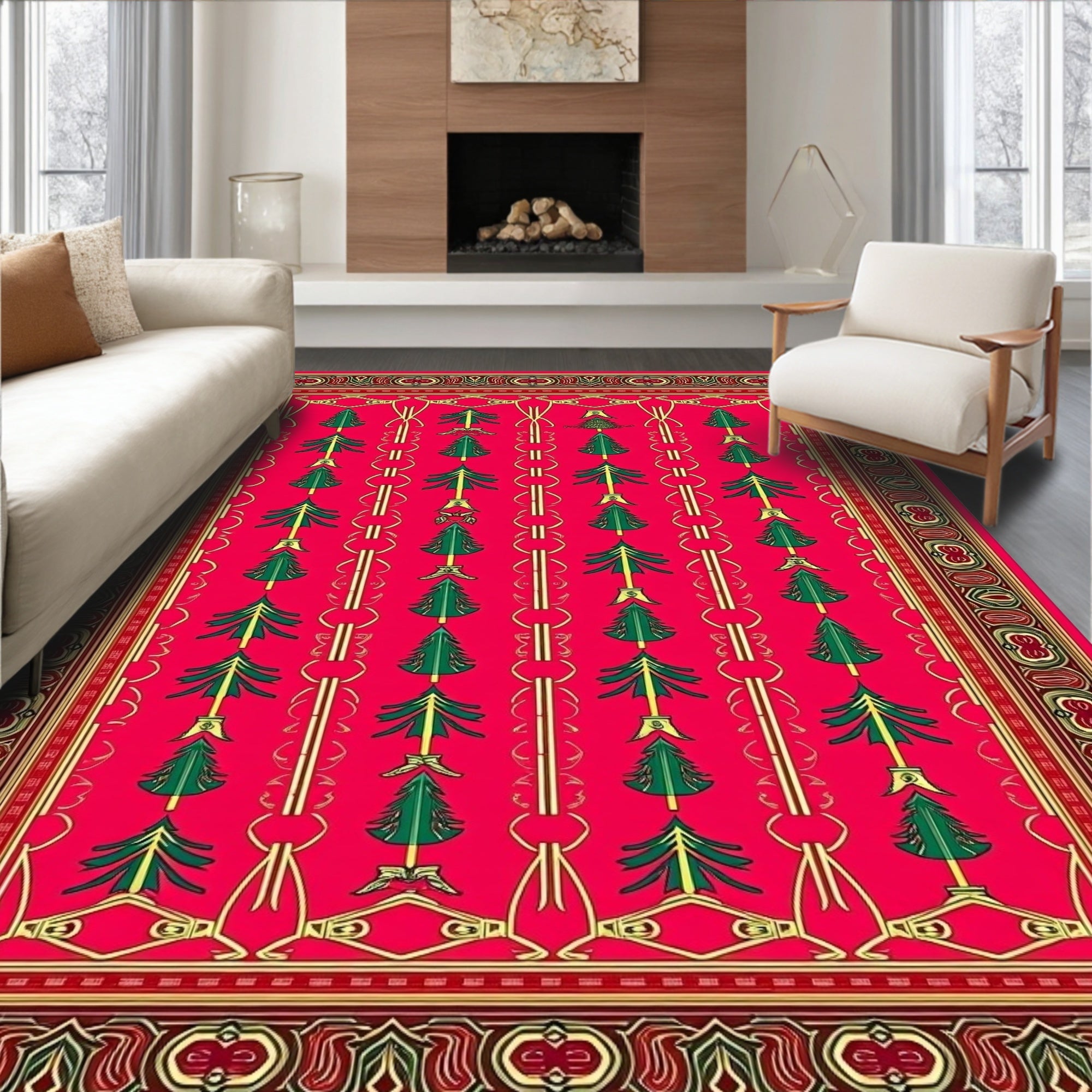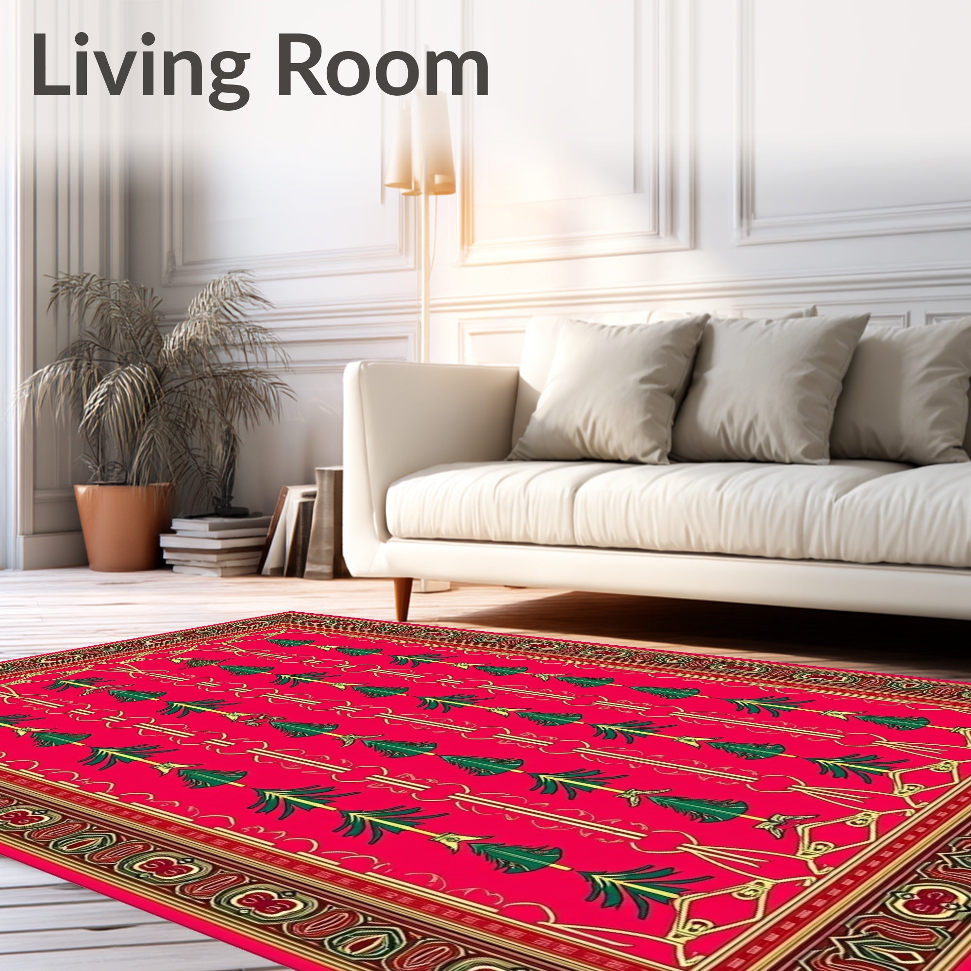Ultra Soft Area Rug, Non Slip, Stain Resistant, Washable Area Rugs for Living Room, Bedroom, Festive Trellis Holiday Pathway(Red) Overview: