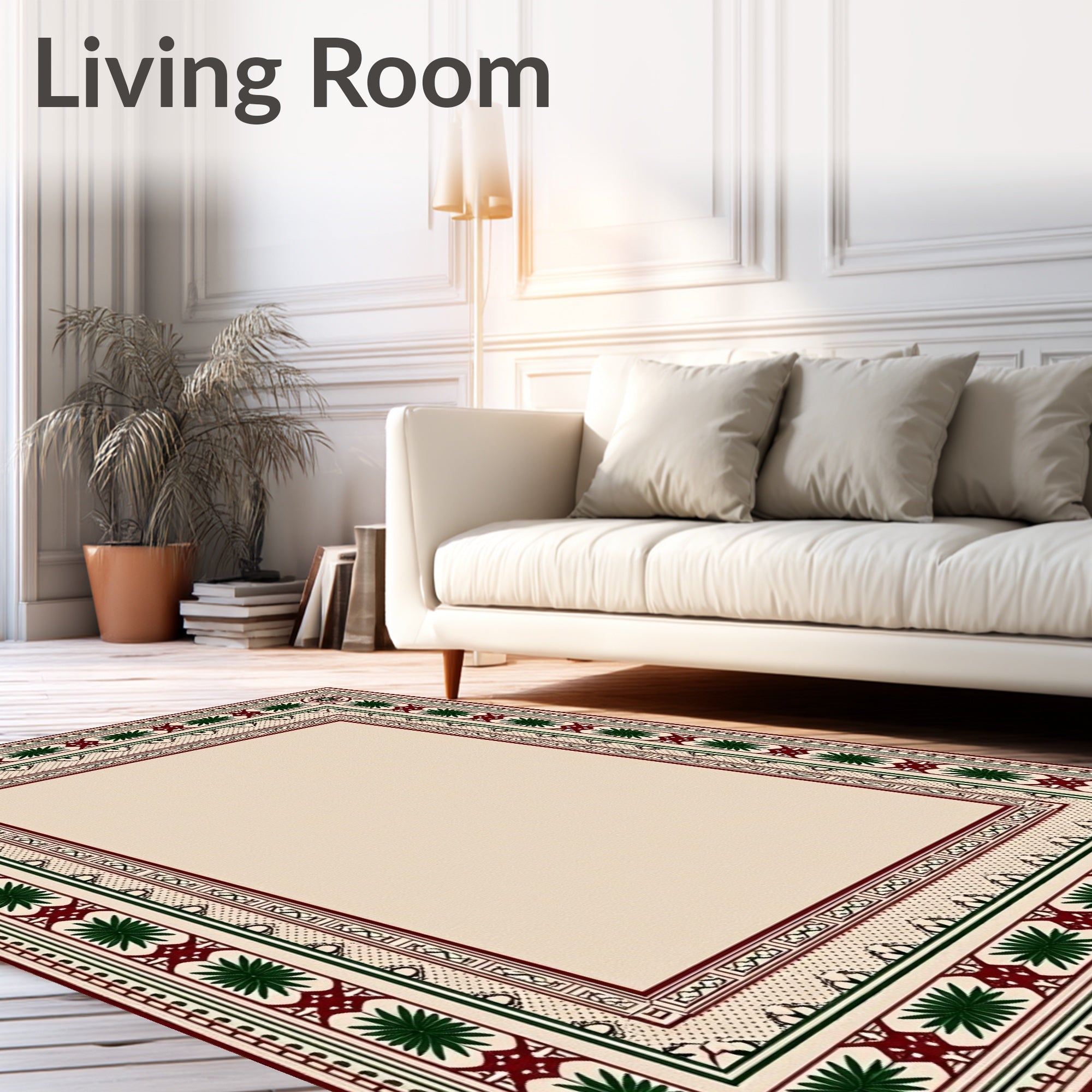 Ultra Soft Area Rug, Non Slip, Stain Resistant, Washable Area Rugs for Living Room, Bedroom, Festive Trellis Holiday(Beige) Overview: