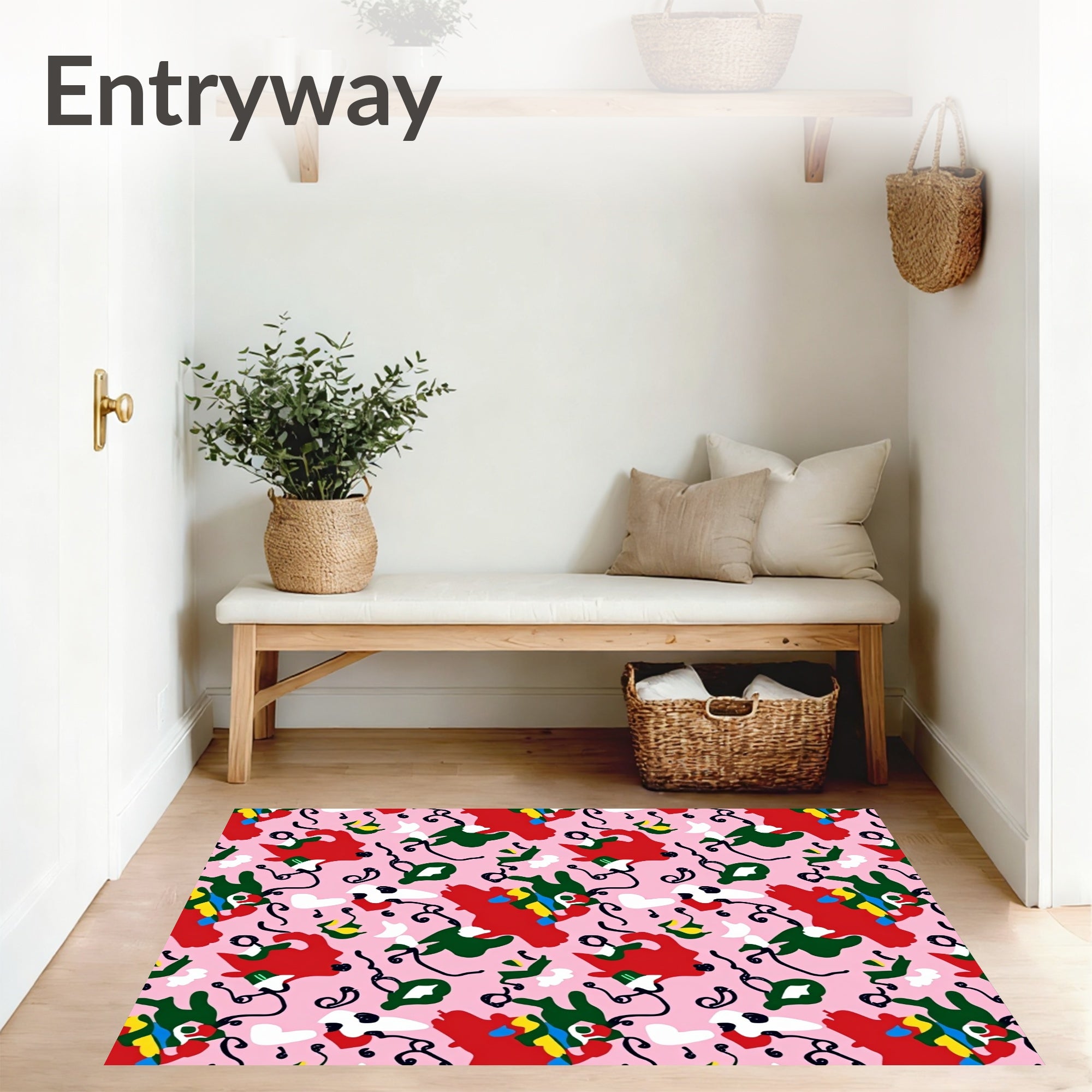 Ultra Soft Area Rug, Non Slip, Stain Resistant, Washable Area Rugs for Living Room, Bedroom, Festive Twinkle Featuring Playful Cat Silhouettes and Holiday Lights(Pink) Overview: