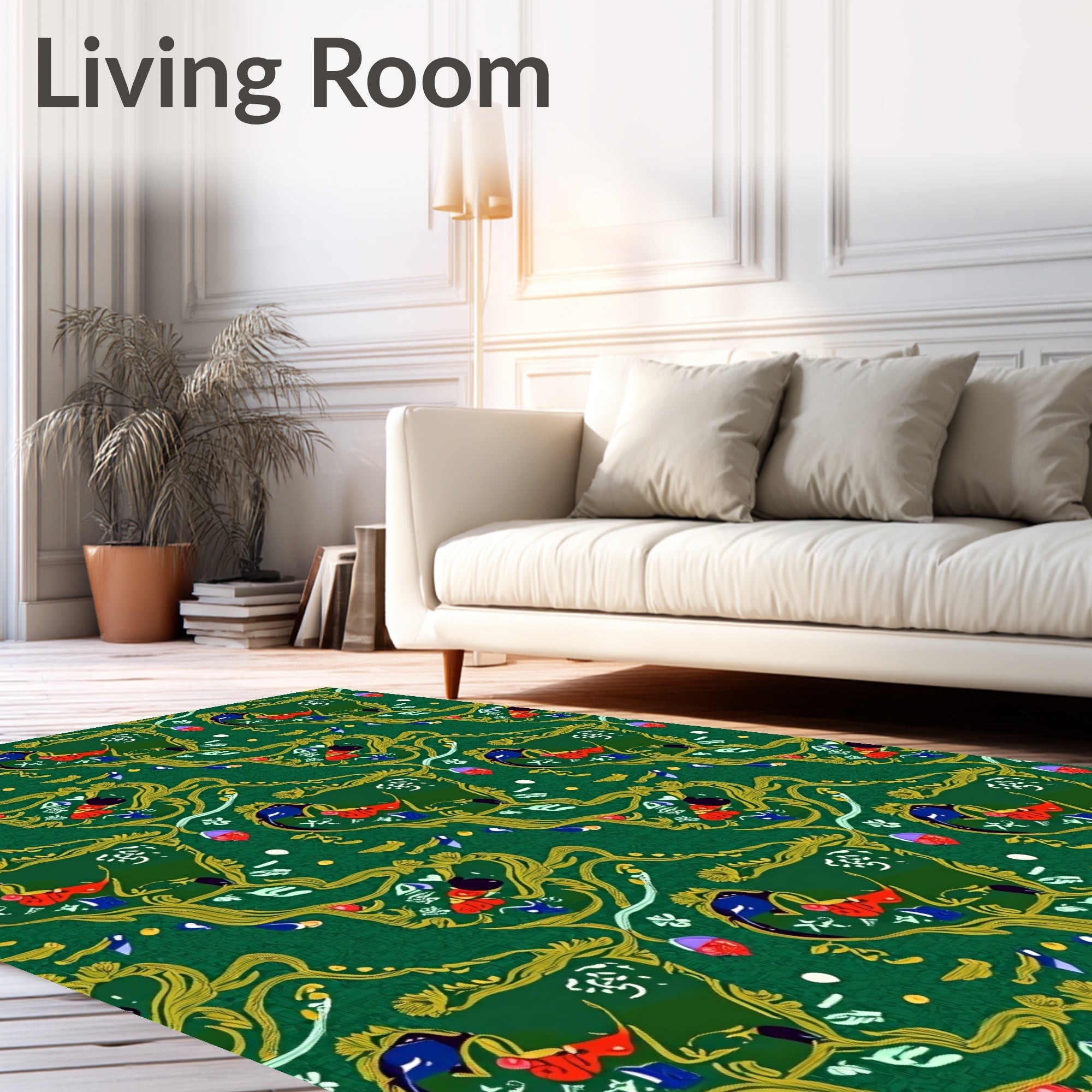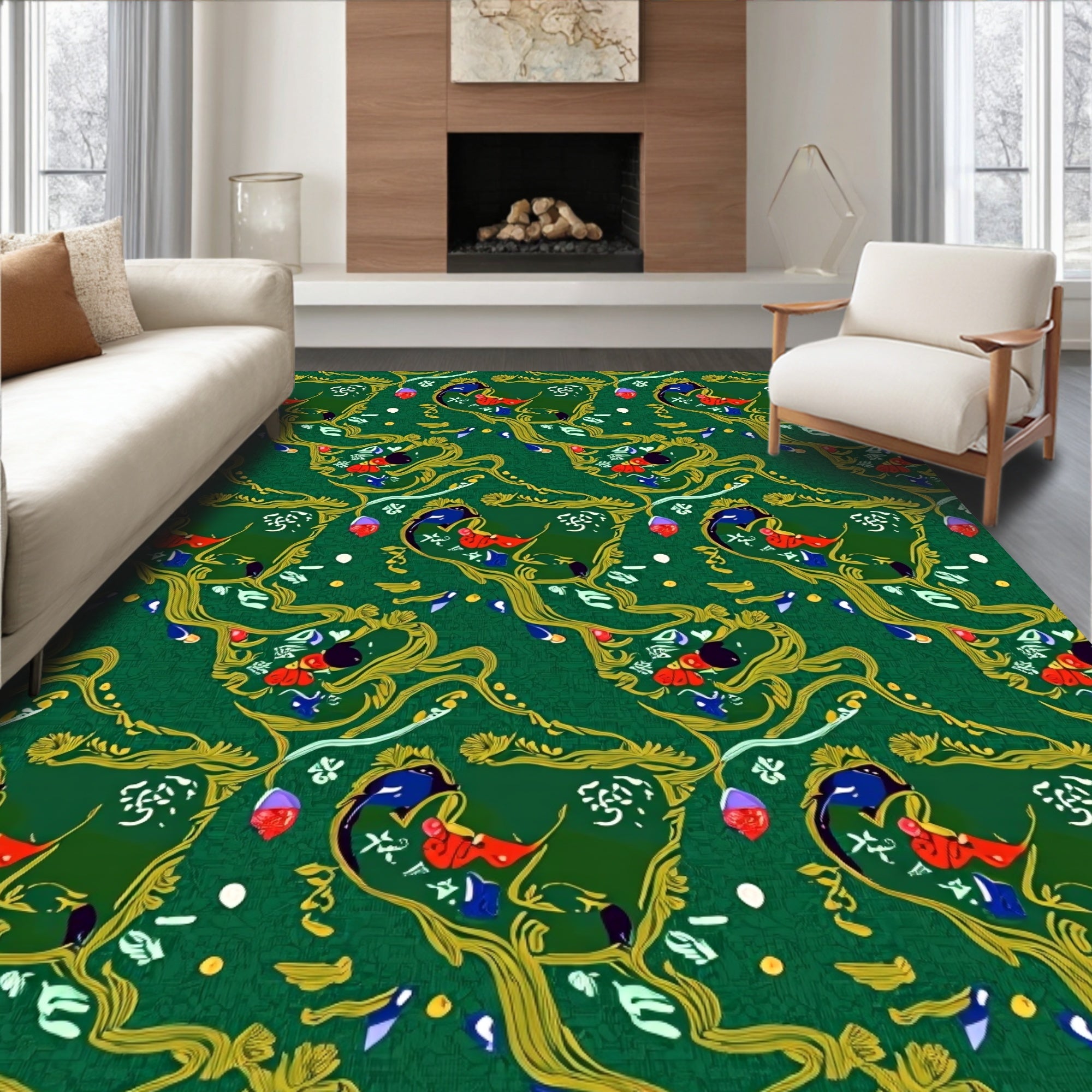 Ultra Soft Area Rug, Non Slip, Stain Resistant, Washable Area Rugs for Living Room, Bedroom, Festive Whimsical Cat with Twinkling Holiday Lights(Green) Overview: