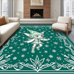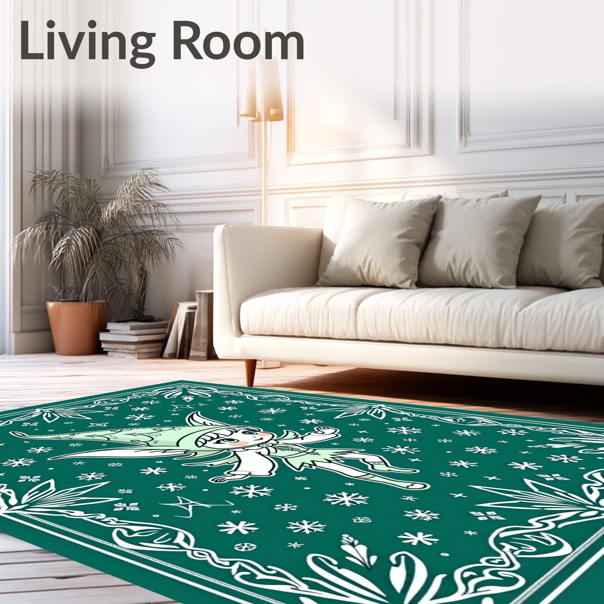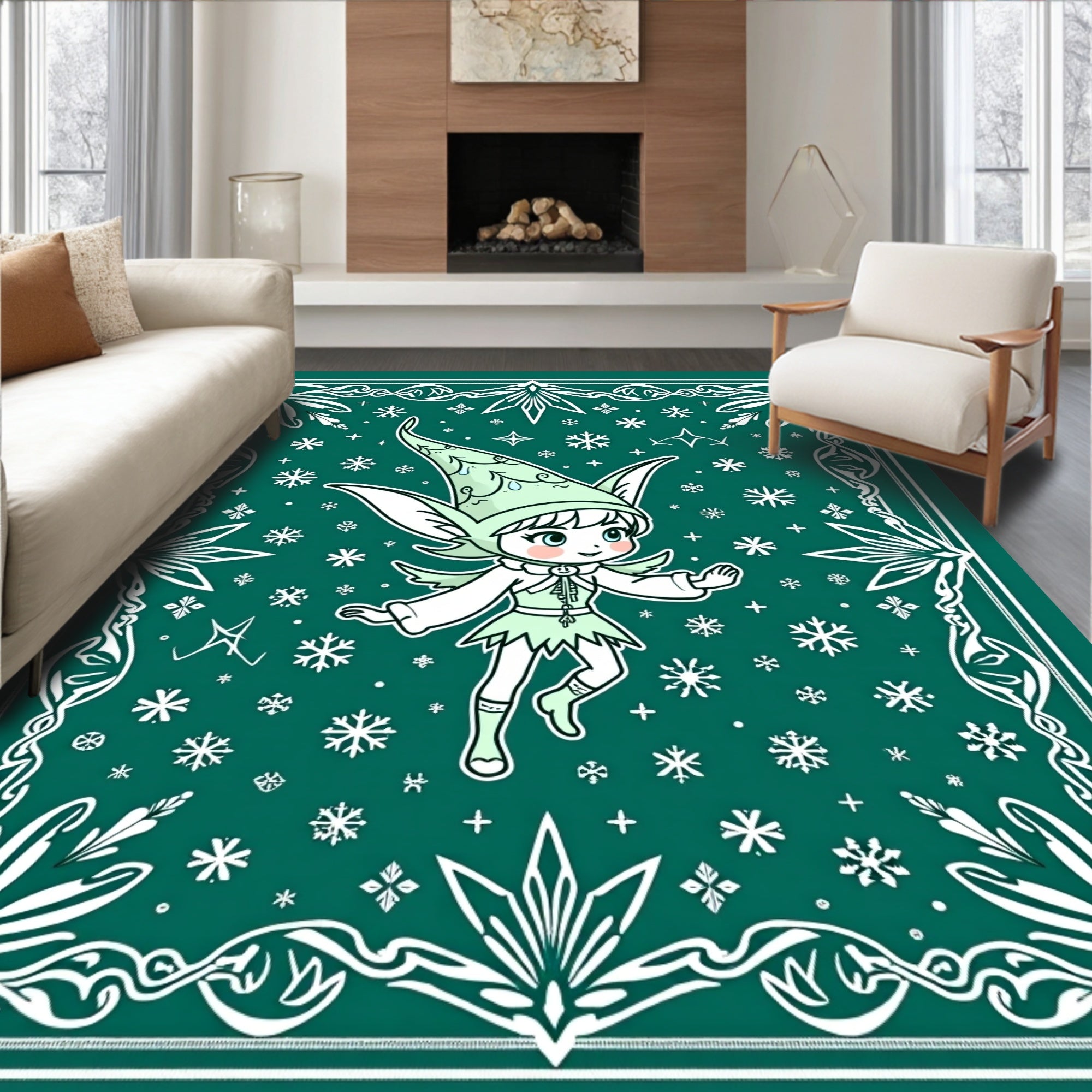 Ultra Soft Area Rug, Non Slip, Stain Resistant, Washable Area Rugs for Living Room, Bedroom, Festive Woodland Semi Circle with Winter Crystal Design(Green) Overview: