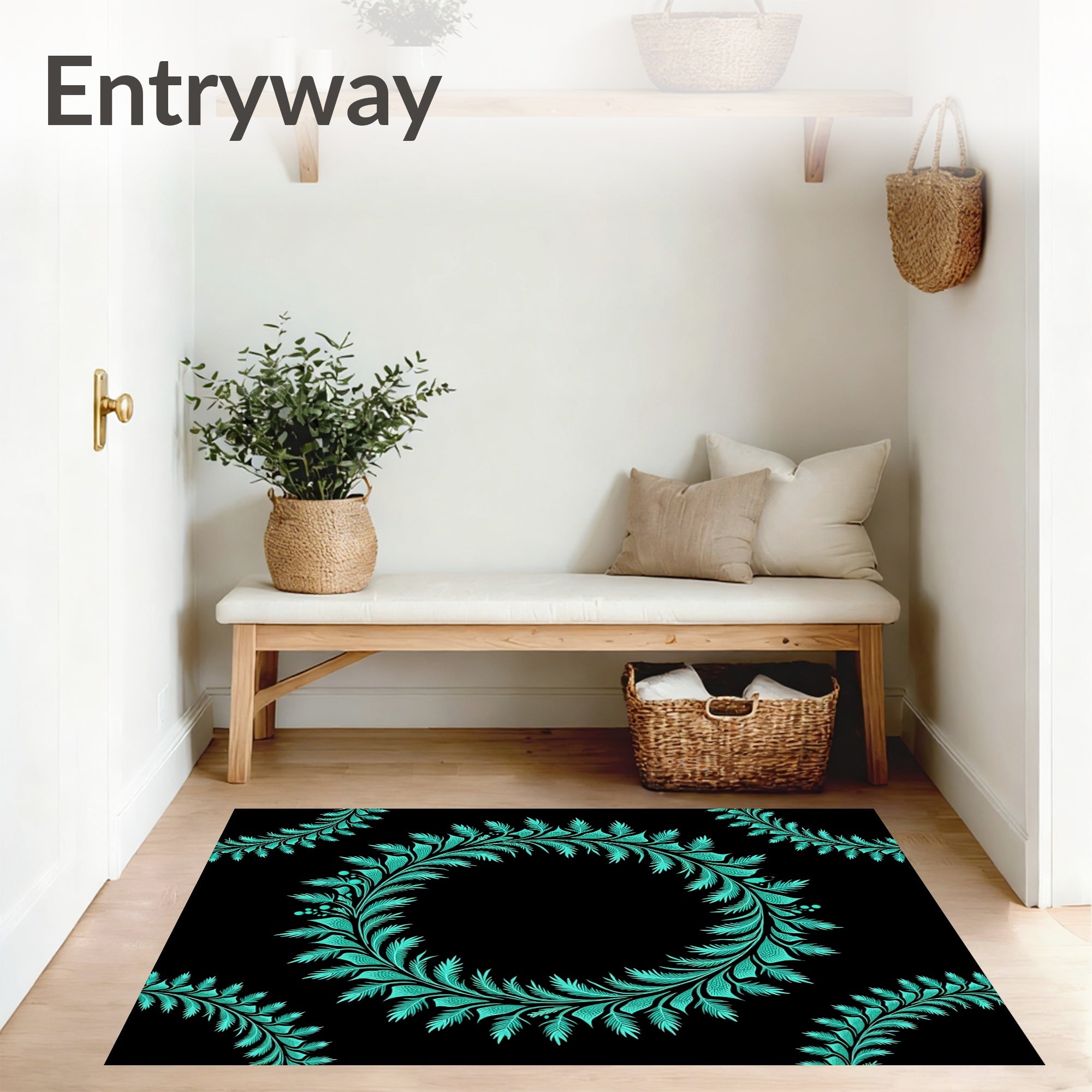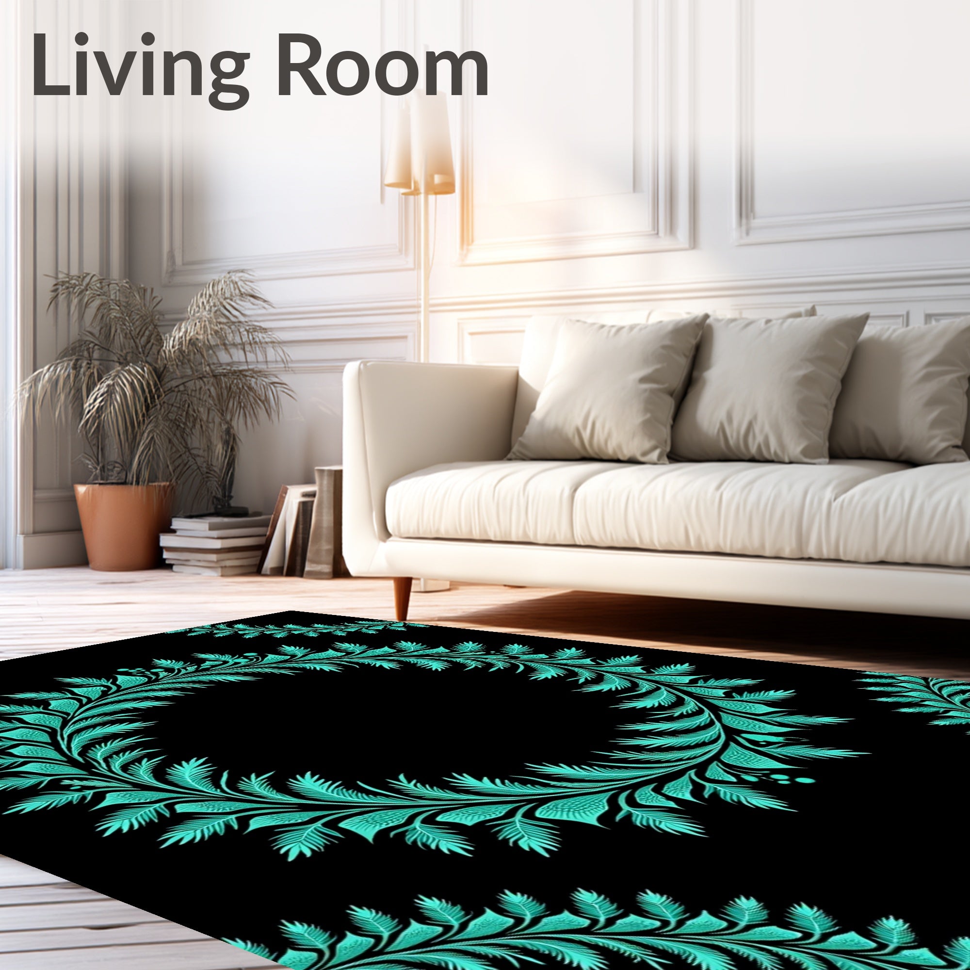 Ultra Soft Area Rug, Non Slip, Stain Resistant, Washable Area Rugs for Living Room, Bedroom, Festive Wreath Medallion Holiday Motif(Black) Overview: