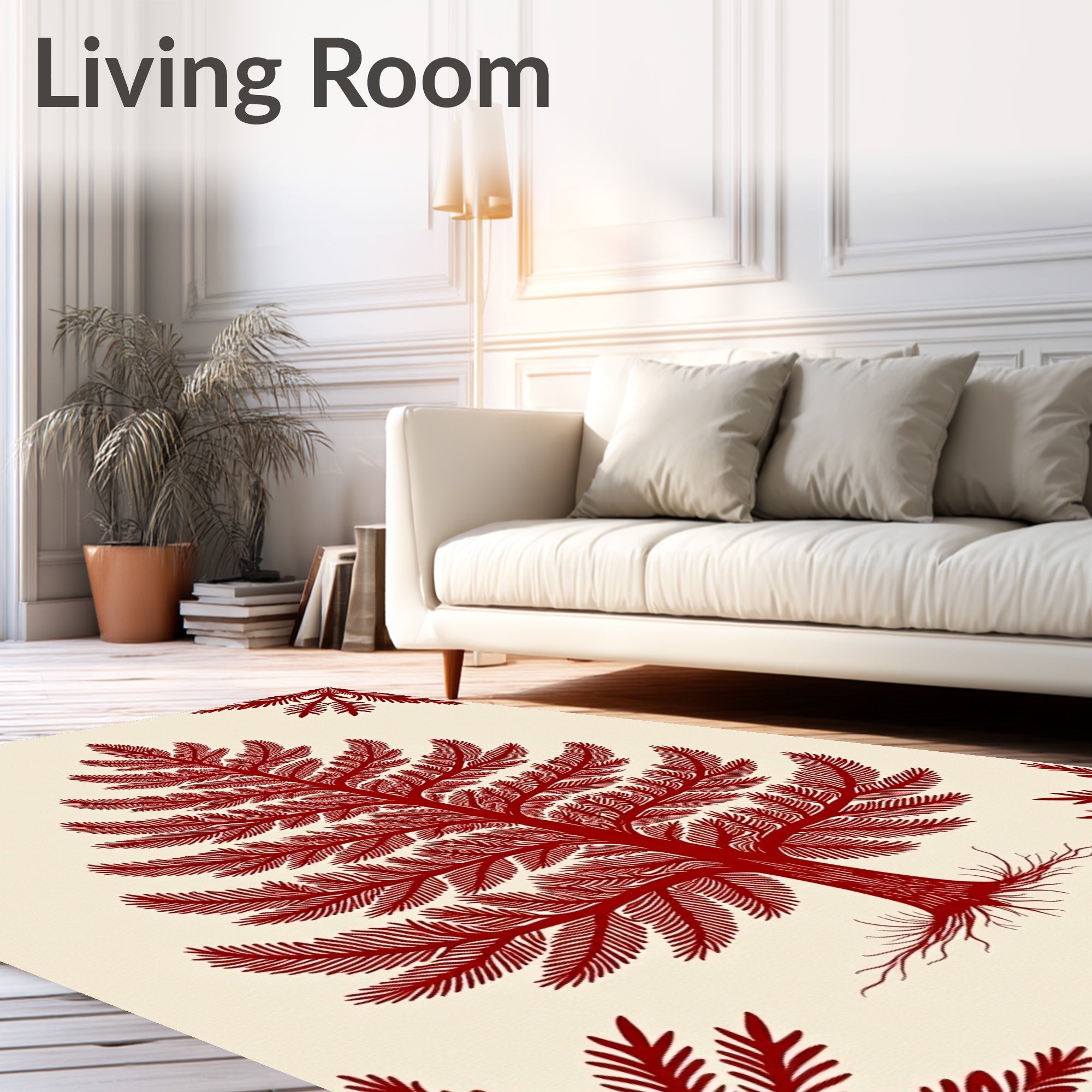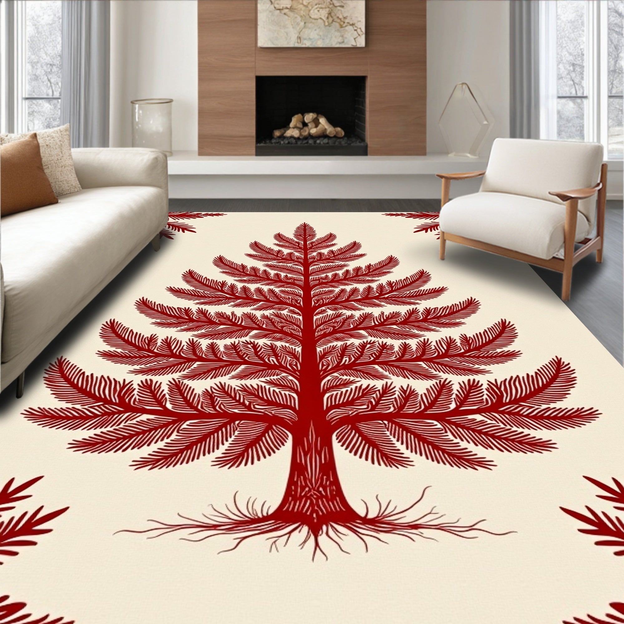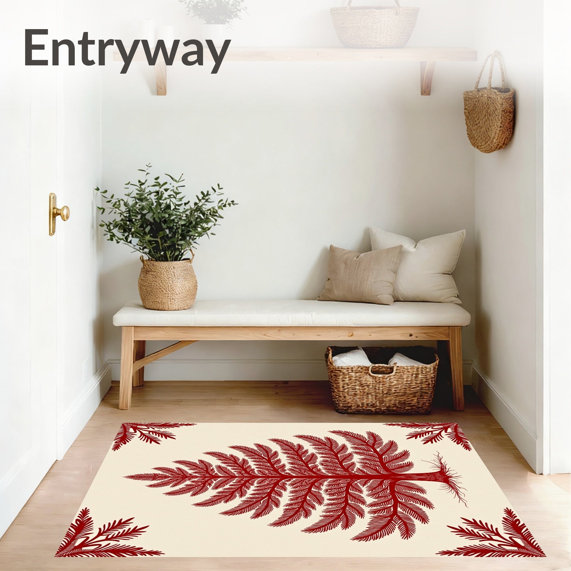 Ultra Soft Area Rug, Non Slip, Stain Resistant, Washable Area Rugs for Living Room, Bedroom, Festive Xmas Tree Heritage Hallway(Red) Overview: