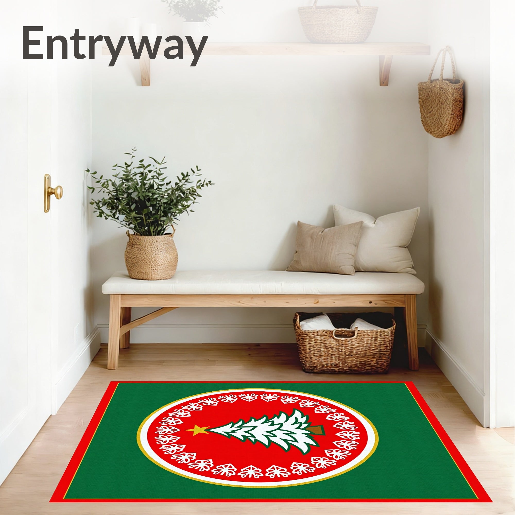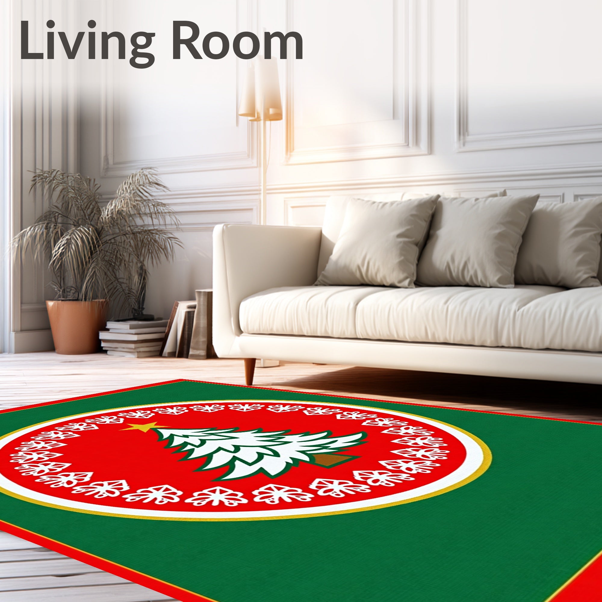 Ultra Soft Area Rug, Non Slip, Stain Resistant, Washable Area Rugs for Living Room, Bedroom, Festive Xmas Tree With Snowflake Border(Green) Overview: