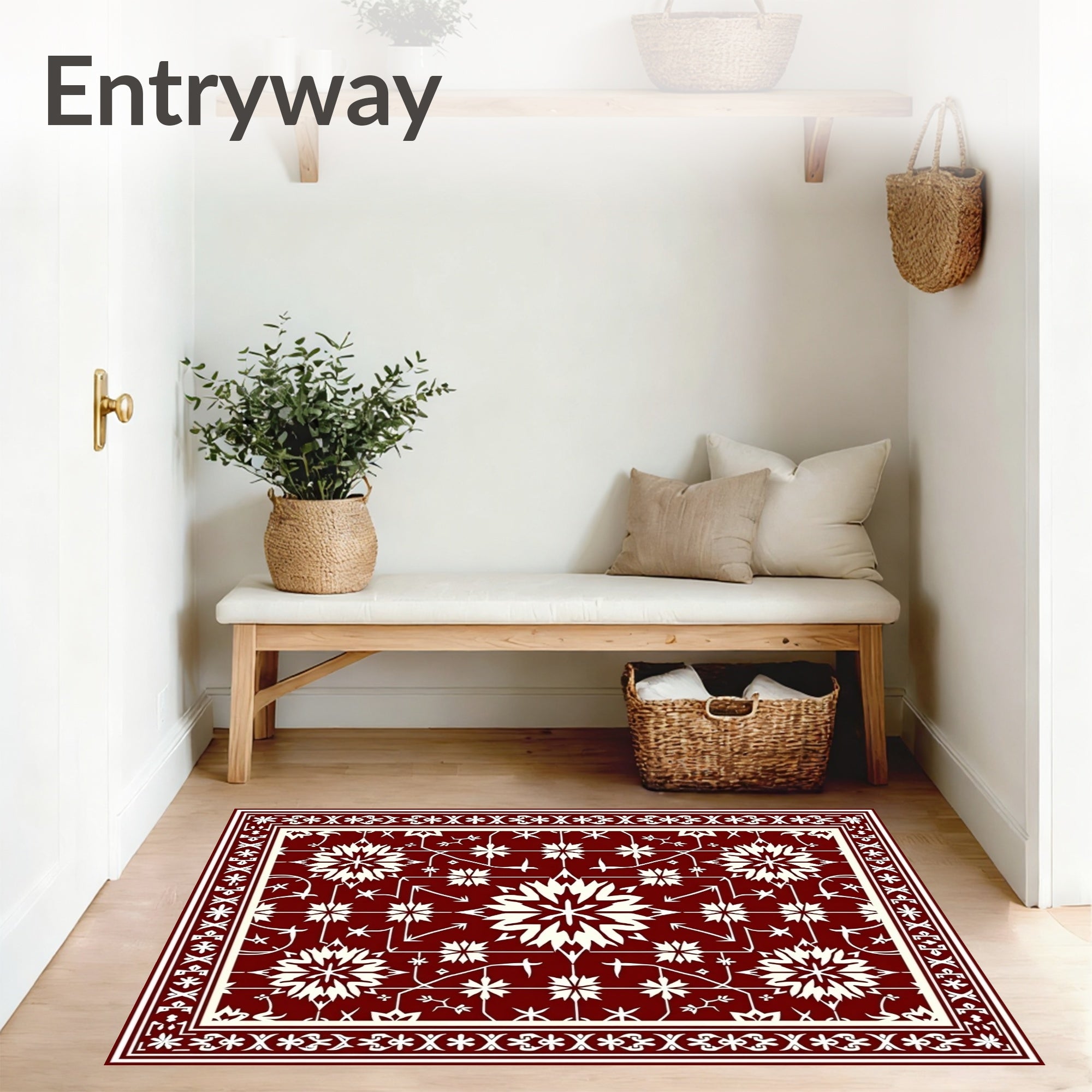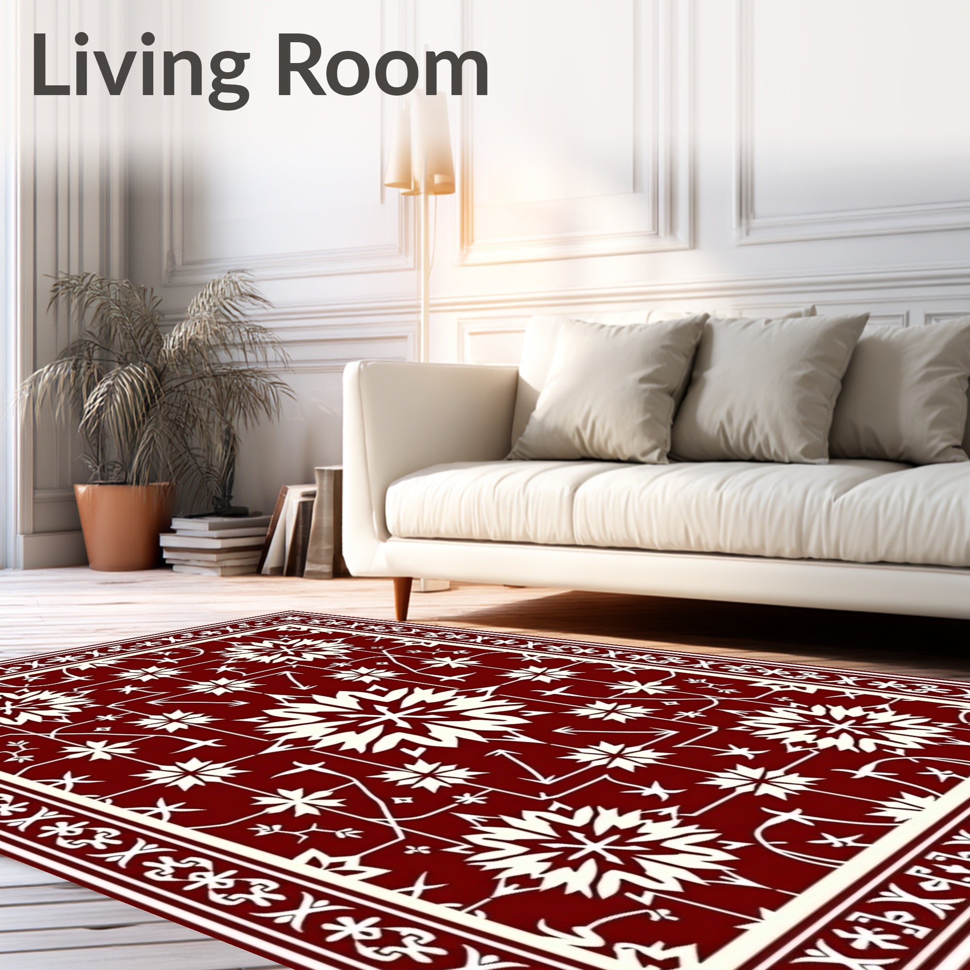 Ultra Soft Area Rug, Non Slip, Stain Resistant, Washable Area Rugs for Living Room, Bedroom, Festive Yuletide Interlocking Nordic Snowflake Holiday Pathway(Red) Overview:
