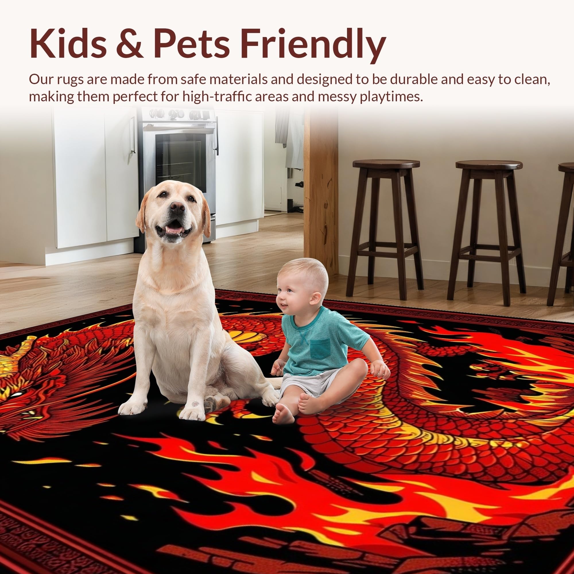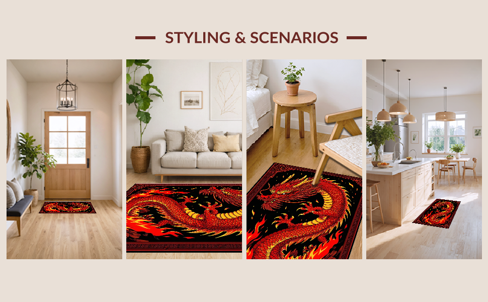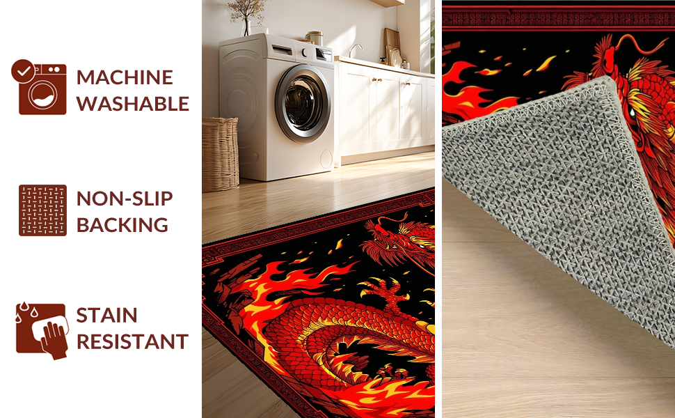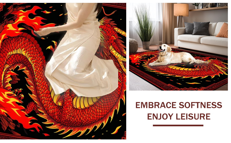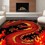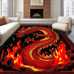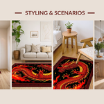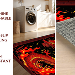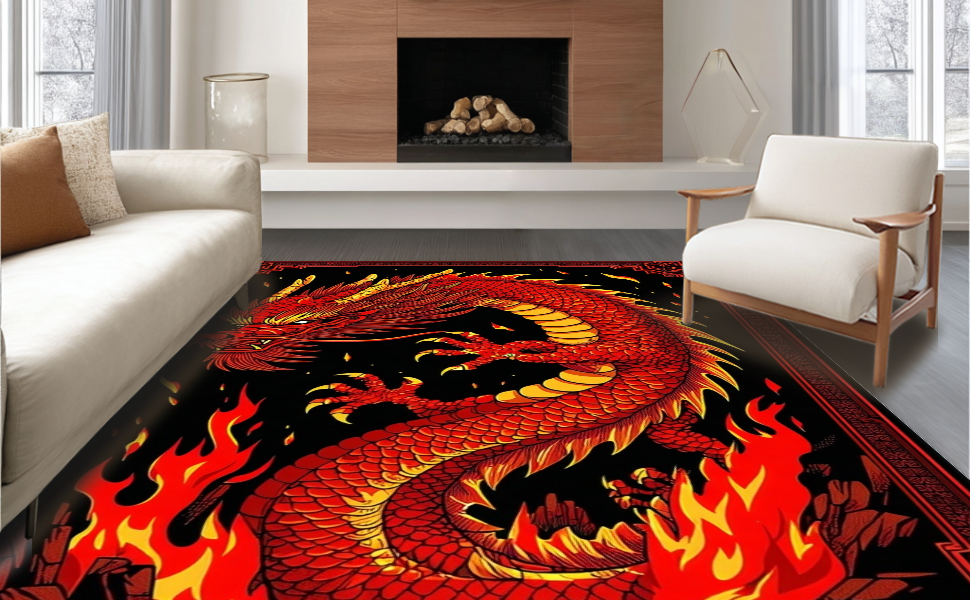 Ultra Soft Area Rug, Non Slip, Stain Resistant, Washable Area Rugs for Living Room, Bedroom, Fiery Kaleidoscope of Dragon Imagery(Red) Overview:
