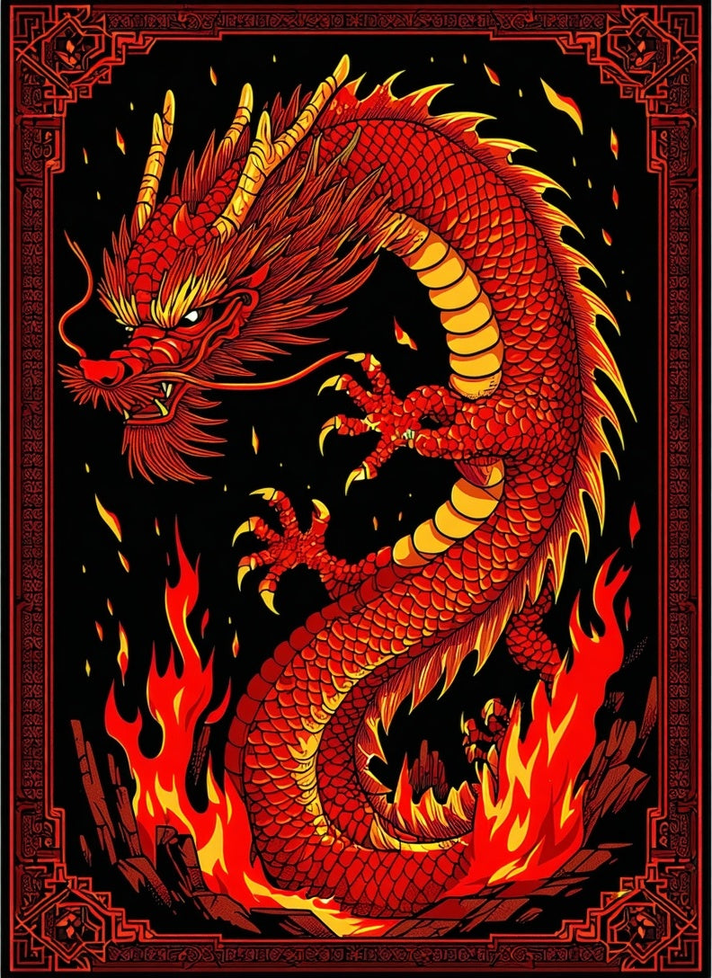 Fiery Kaleidoscope of Dragon Imagery(Red)