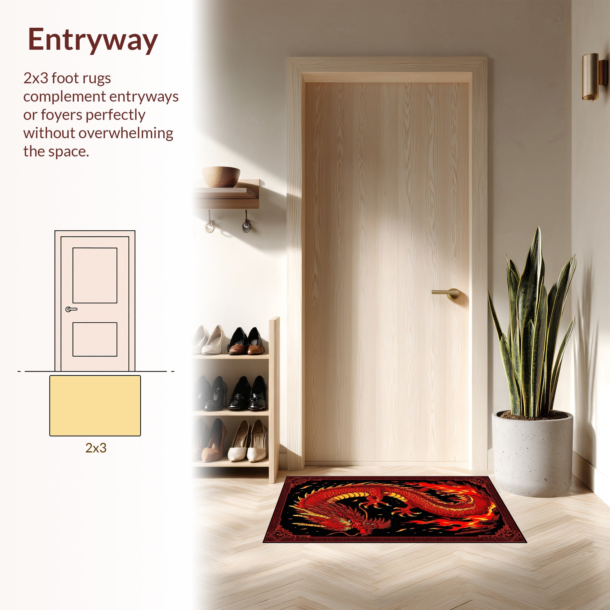 Flatwoven High Traffic Area Rug, Fiery Kaleidoscope of Dragon Imagery, Non Slip, Stain Resistant, Washable Area Rugs for Living Room, Bedroom (Red) Overview: