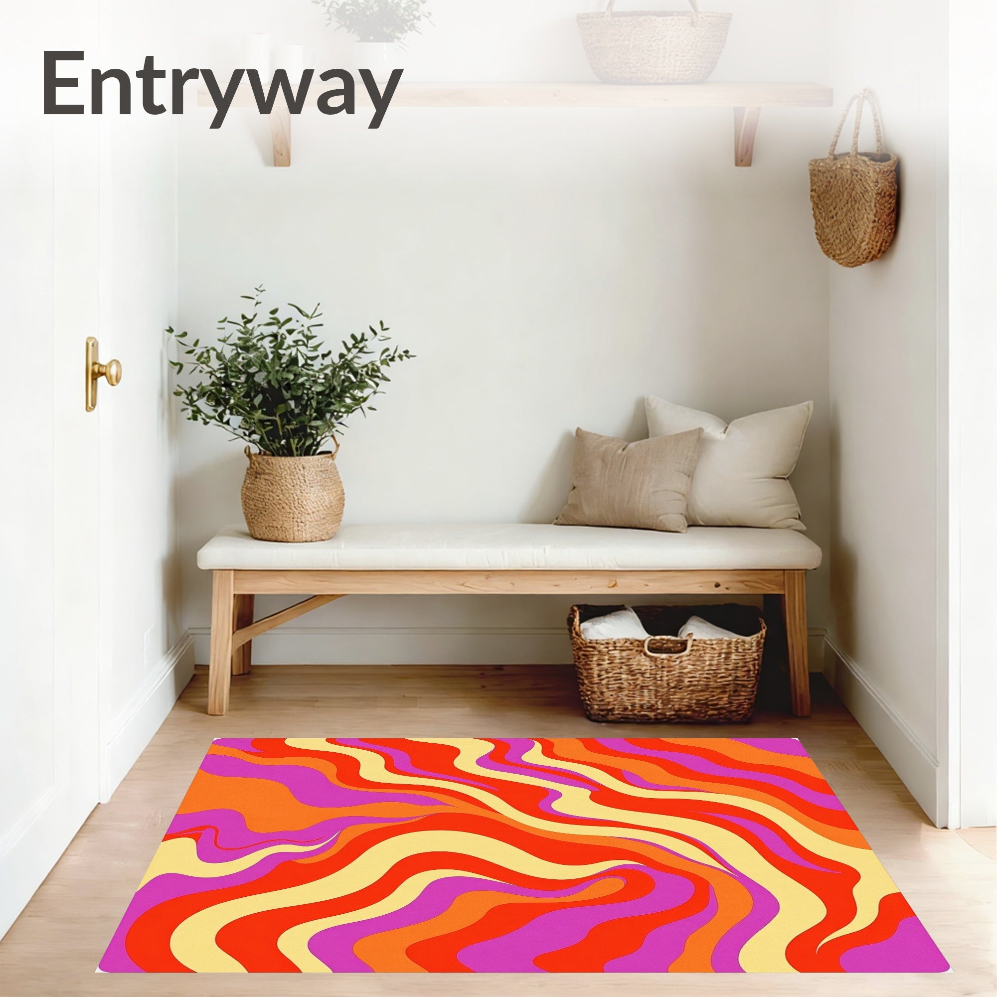 Ultra Soft Area Rug, Non Slip, Stain Resistant, Washable Area Rugs for Living Room, Bedroom, Flame Dance Abstract Expression Fluffy with Flowing Forms(Red) Overview: