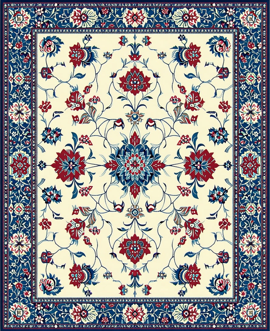 Flatwoven High Traffic Area Rug, Floral Accent Red/Blue Vintage Style, Non Slip, Stain Resistant, Washable Area Rugs for Living Room, Bedroom (Red) Overview:
