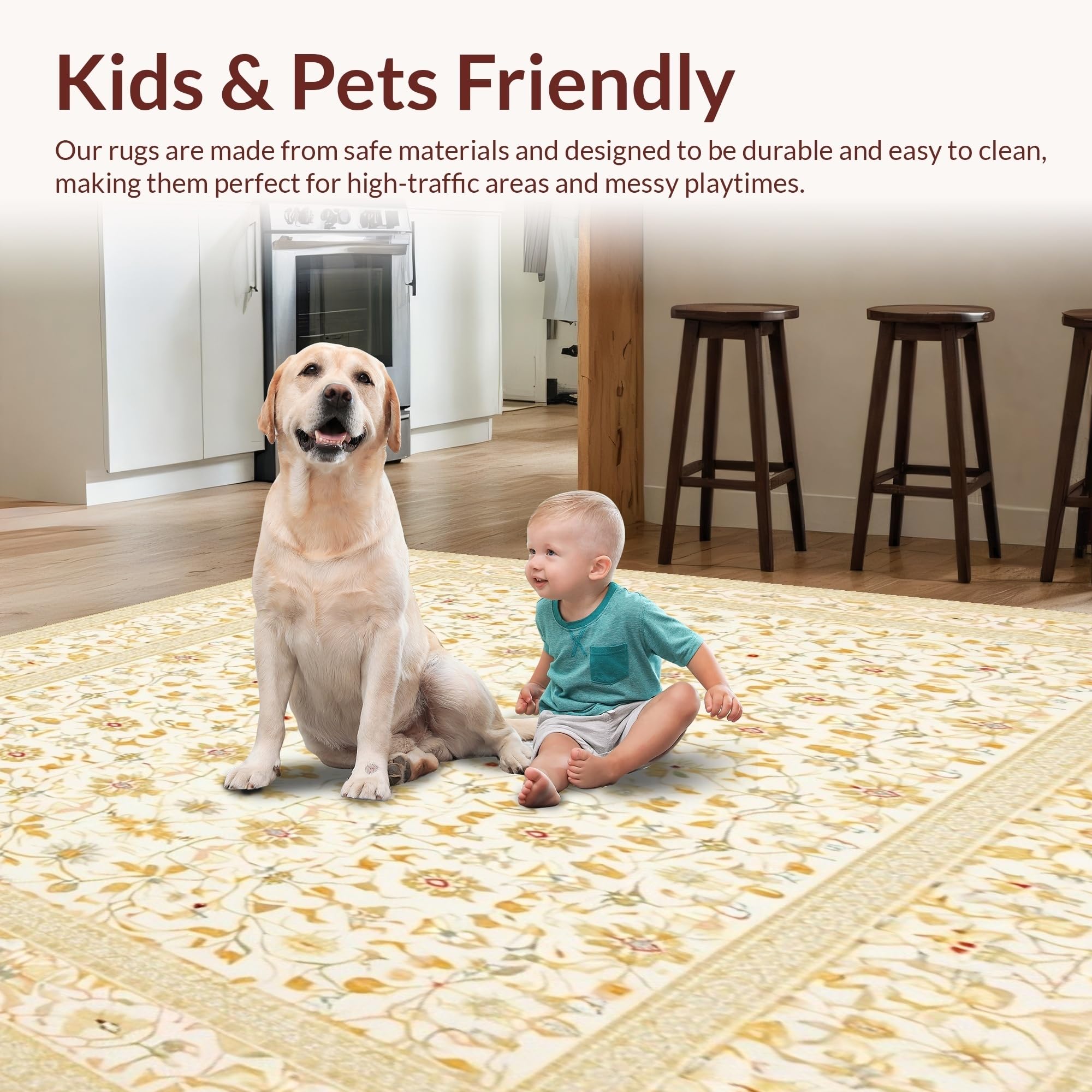 Ultra Soft Area Rug, Non Slip, Stain Resistant, Washable Area Rugs for Living Room, Bedroom, Floral Beige Low Pile Small Area(Ivory) Overview: